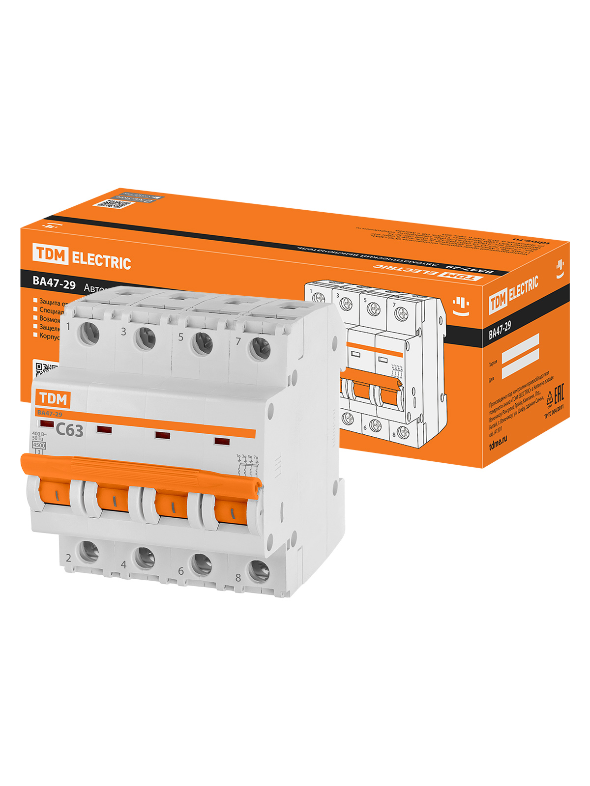 Наименование: Авт. выкл.ВА47-29 4Р 63А 4,5кА х-ка С TDM
