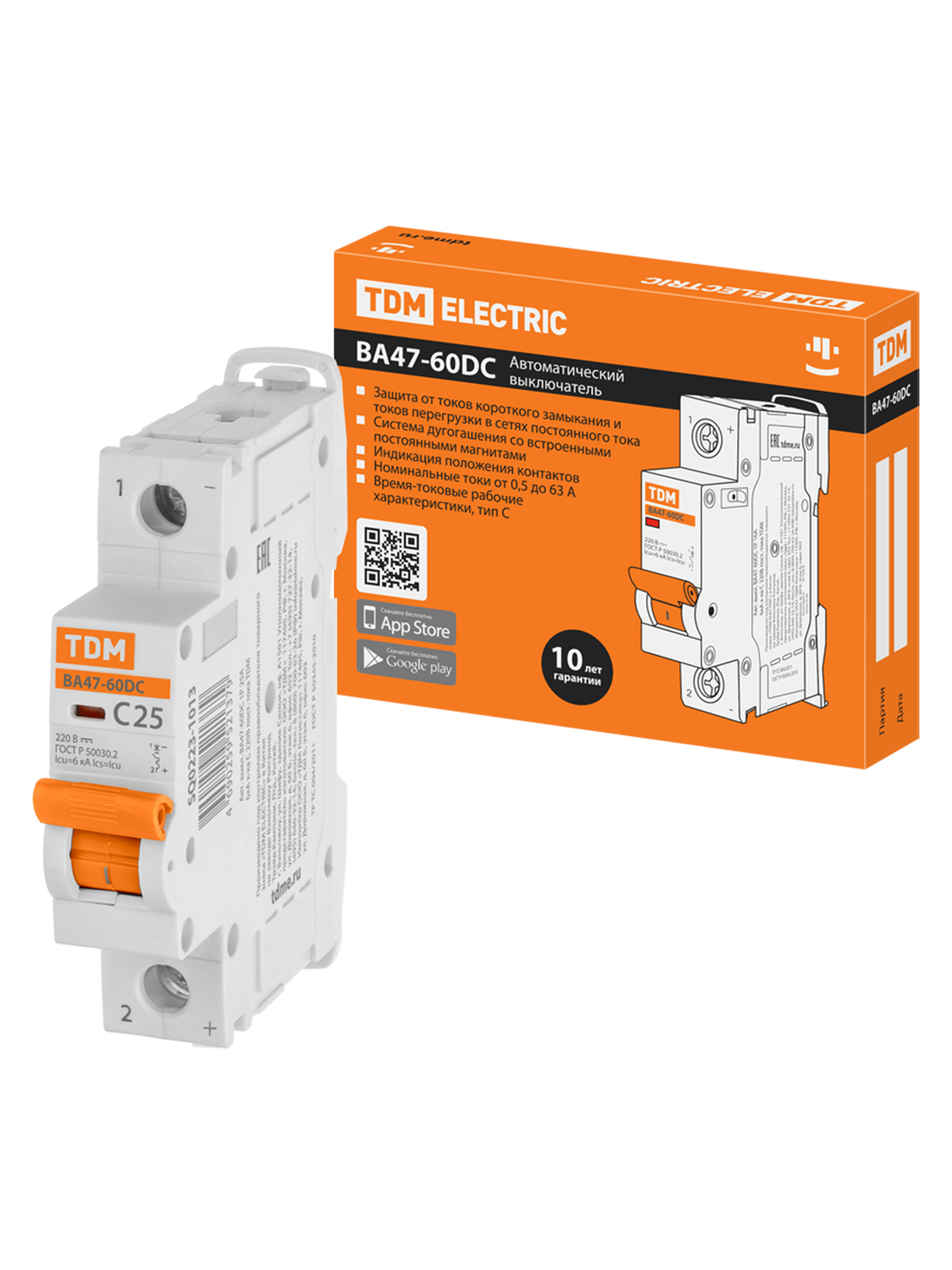 Наименование: Авт. выкл.ВА47-60DC 1P 25А 6кА х-ка С TDM