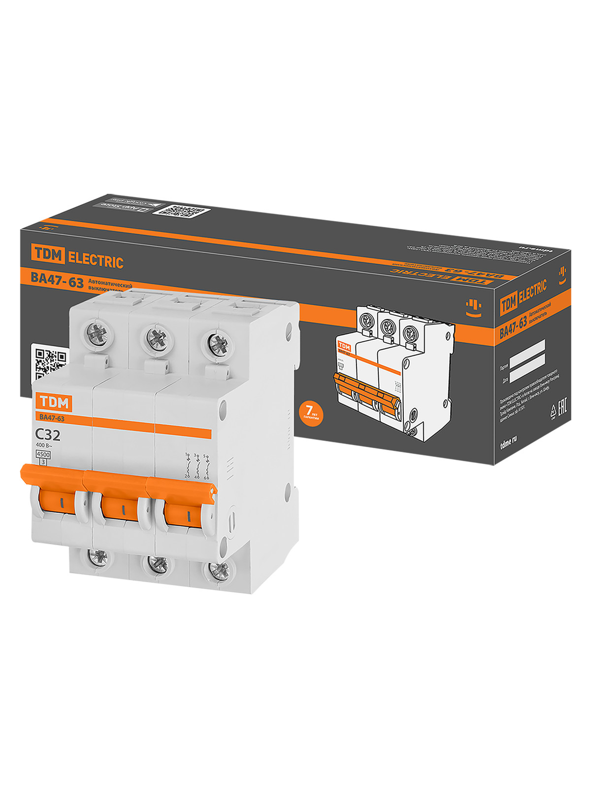 Наименование: Авт. выкл.ВА47-63 3Р 32А 4,5кА х-ка С TDM