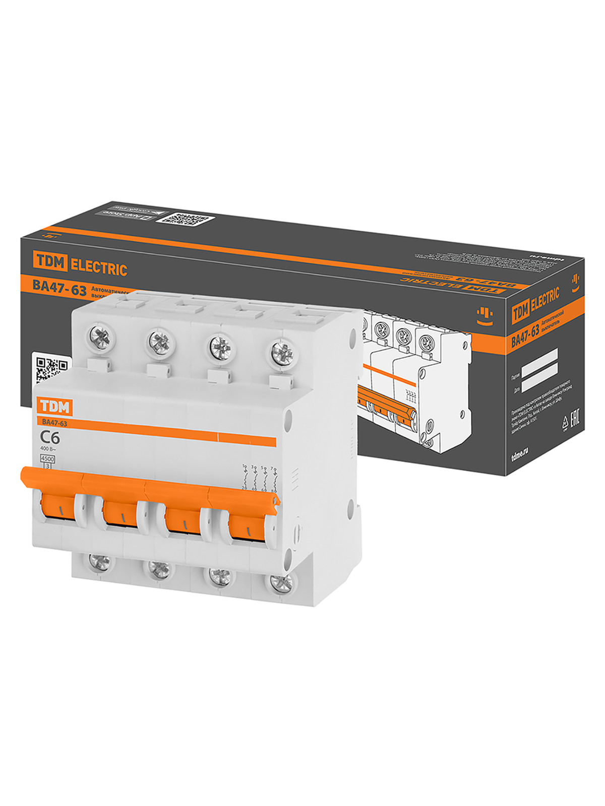 Наименование: Авт. выкл.ВА47-63 4Р 6А 4,5кА х-ка С TDM