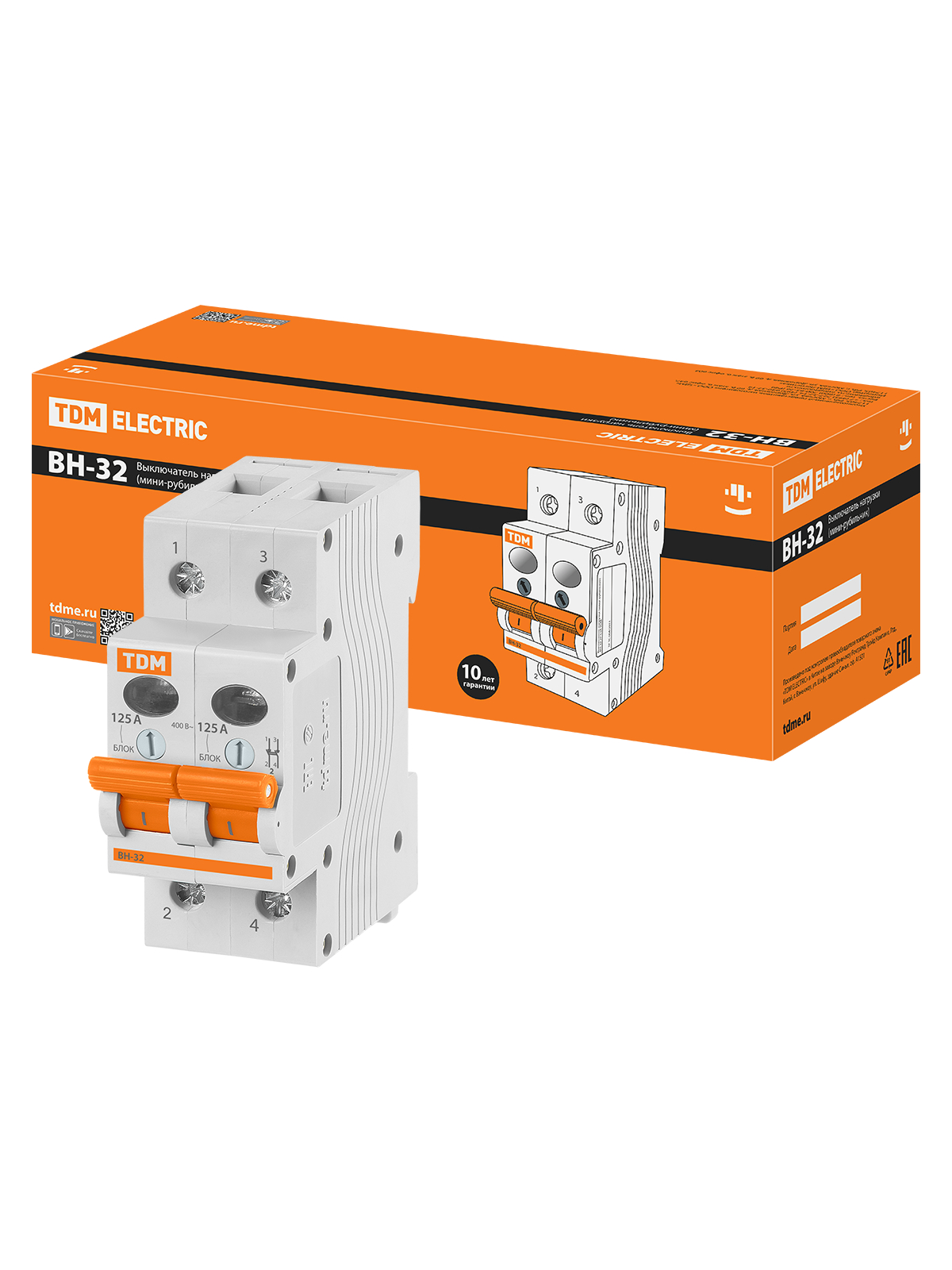 Наименование: Выключатель нагрузки (мини-рубильник) ВН-32 2P 125A TDM