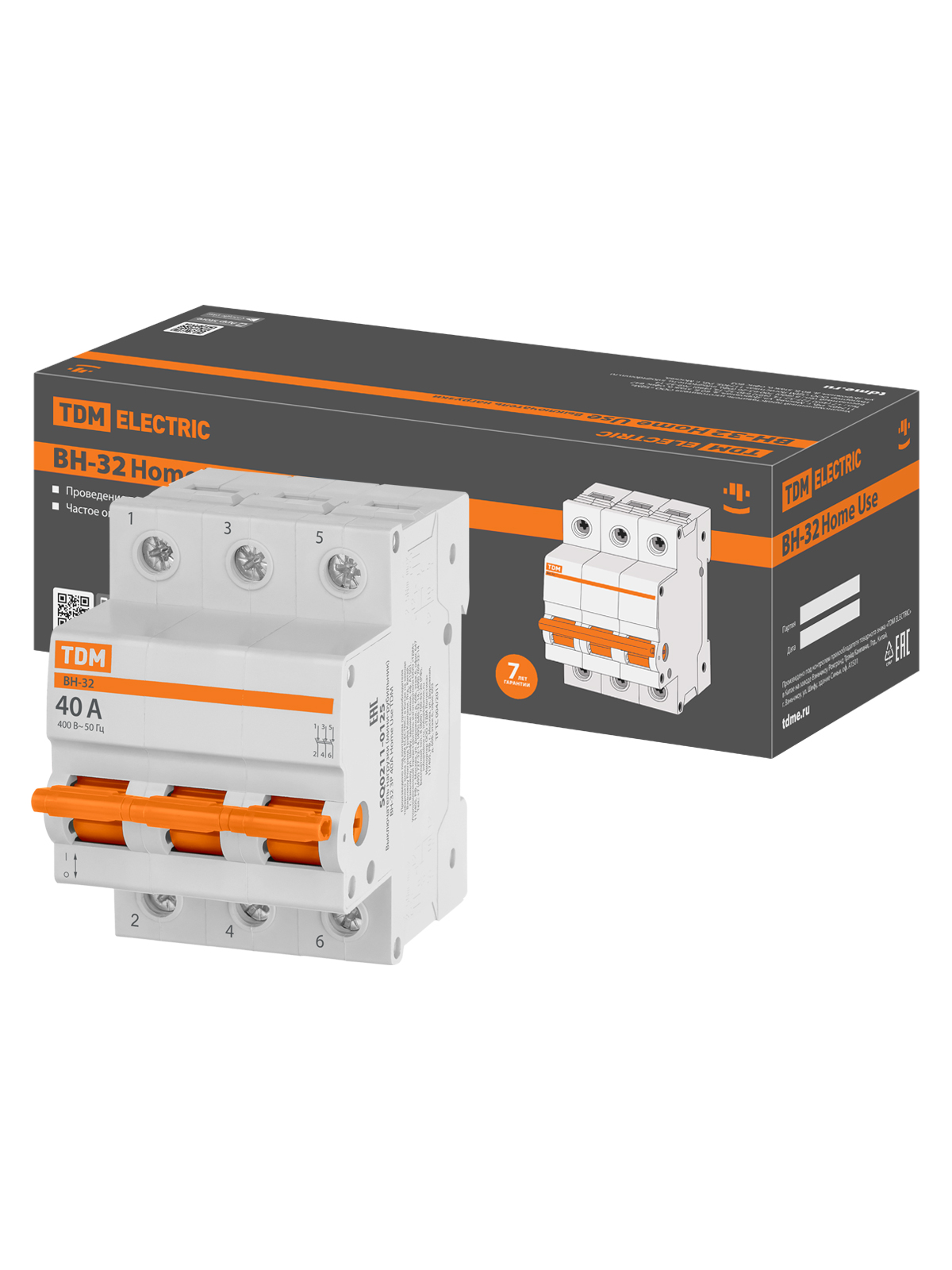 Наименование: Выключатель нагрузки (мини-рубильник) ВН-32 3P 40A Home Use TDM