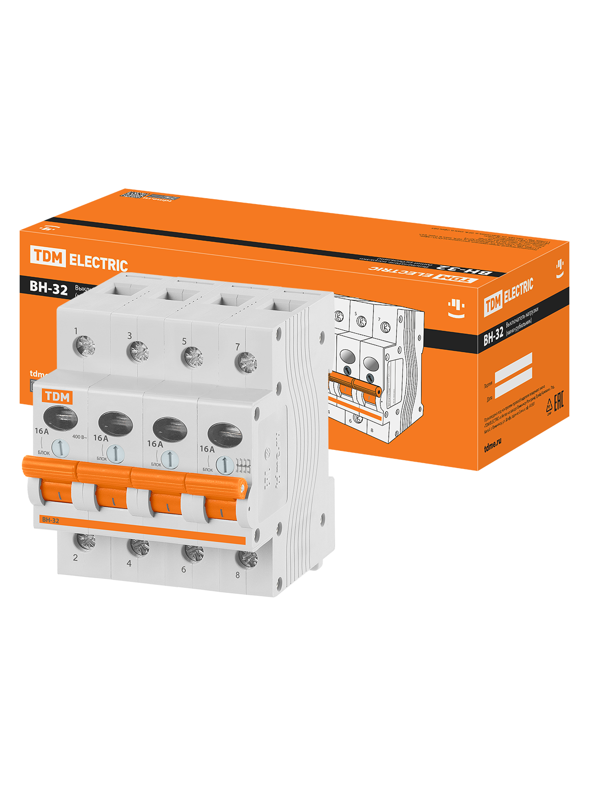Наименование: Выключатель нагрузки (мини-рубильник) ВН-32 4P 16A TDM