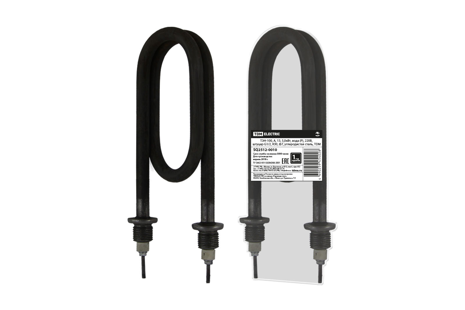 Наименование: ТЭН-100, А, 13, 5,0кВт, вода (Р), 220В, штуцер G1/2, R30, Ф7, углеродистая сталь, TDM