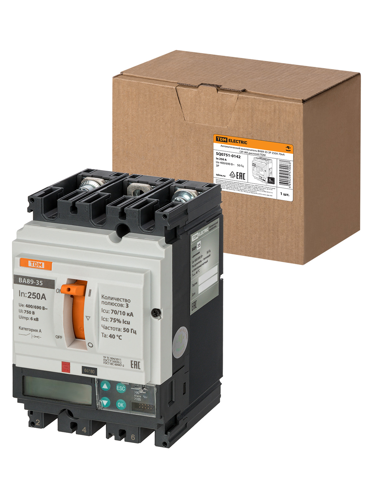 Наименование: ВА89-35 3Р 250А 70кА (ЭР-ЖК дисплей) TDM