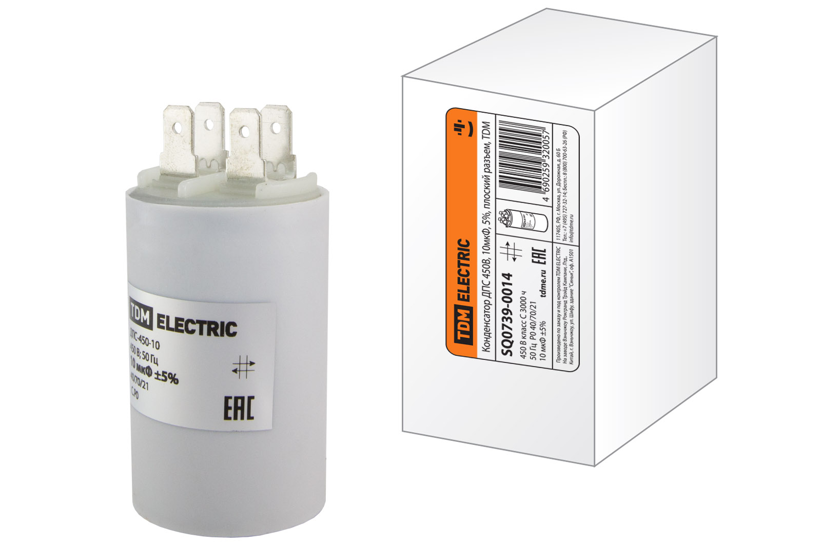 Наименование: Конденсатор ДПС 450В, 10мкФ, 5%, плоский разъем, TDM