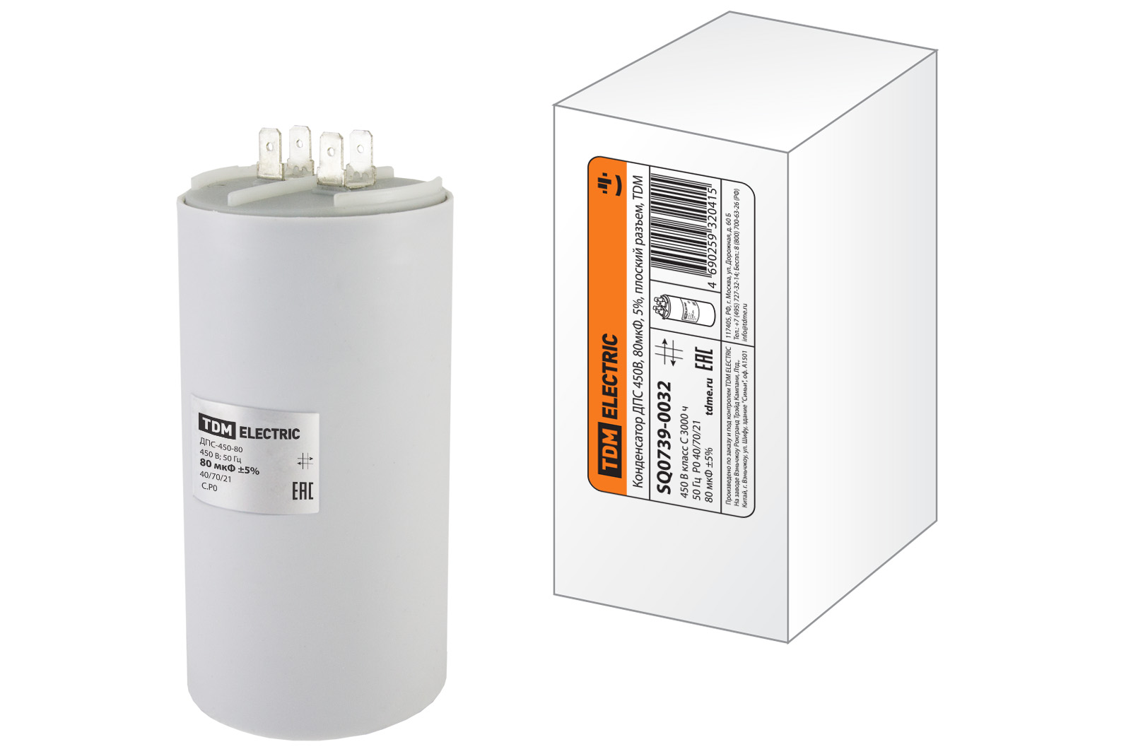 Конденсатор ДПС 450В, 80мкФ, 5%, плоский разъем, TDM