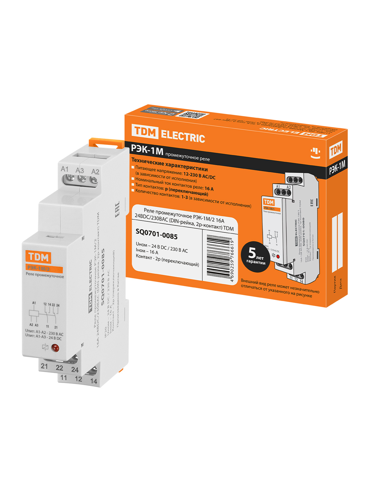 Наименование: Реле промежуточное РЭК-1М/2 16А 24ВDС/230ВАС (DIN-рейка, 2р-контакт) TDM