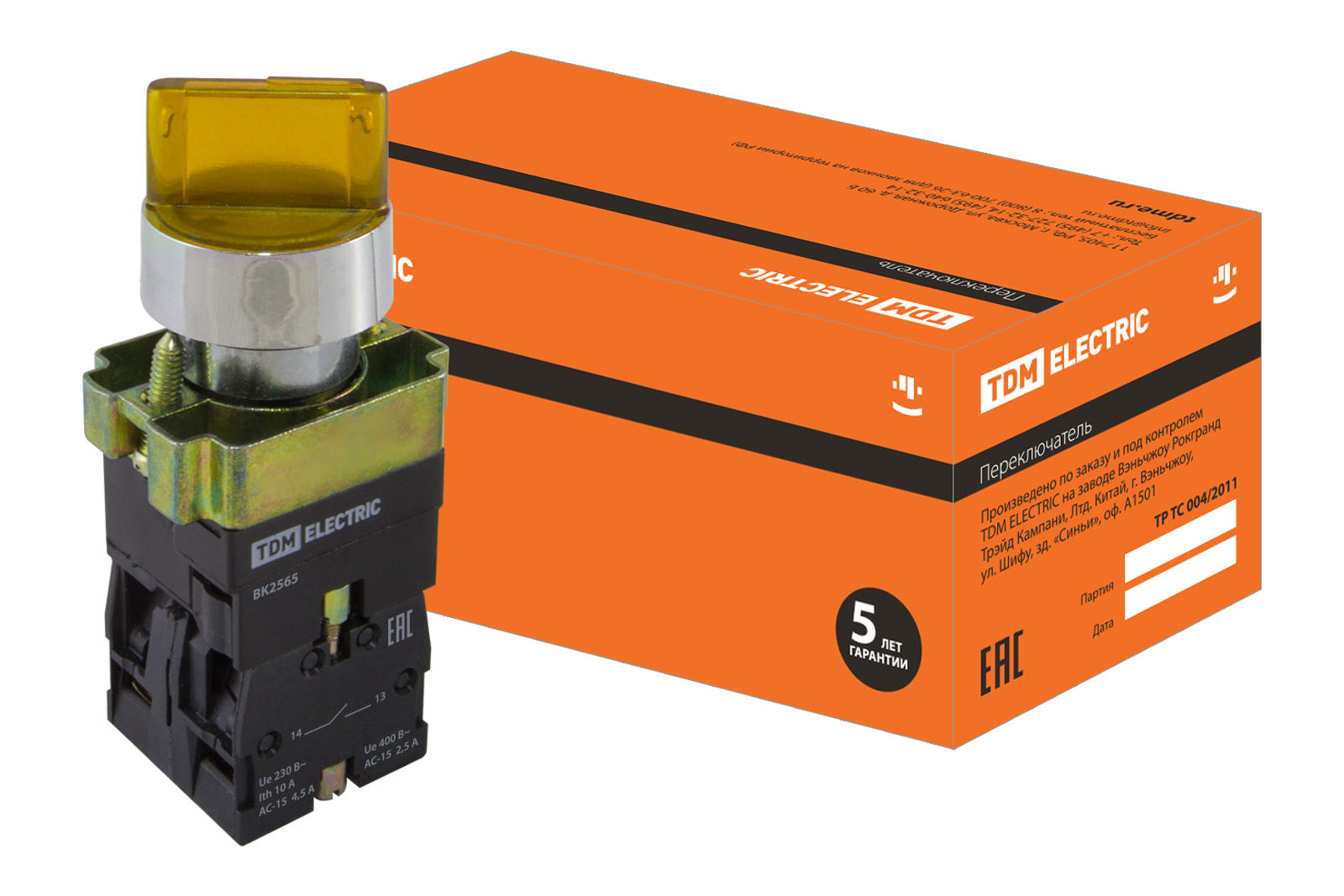 Наименование: Перекл. 2 полож. SB2-BK2565 с фиксацией, 1НО+1НЗ, d22 мм, 230 В LED, желтый, IP40 TDM