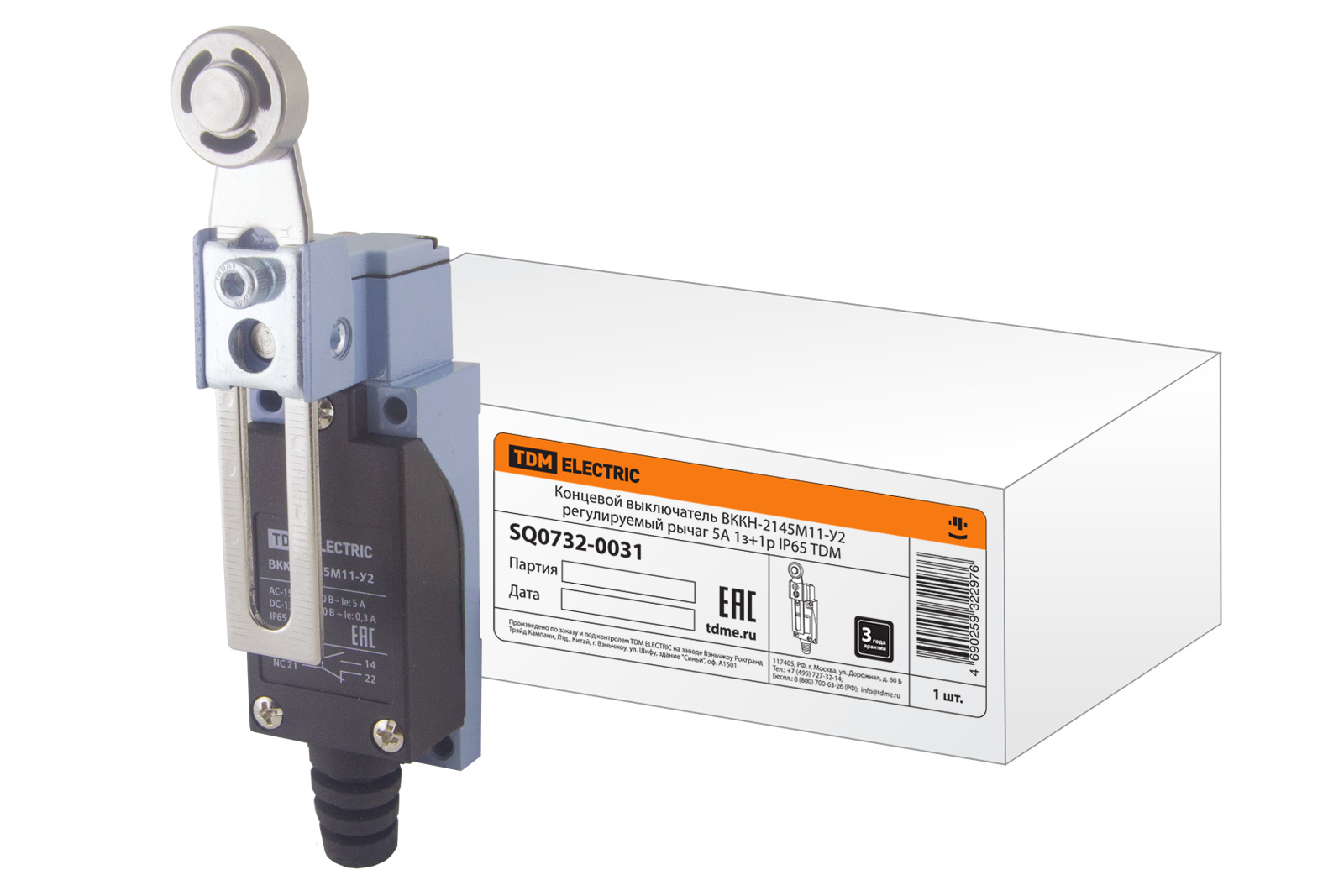 Наименование: Концевой выключатель ВККН-2145М11-У2 регулируемый рычаг 5А 1з+1р IP65 TDM