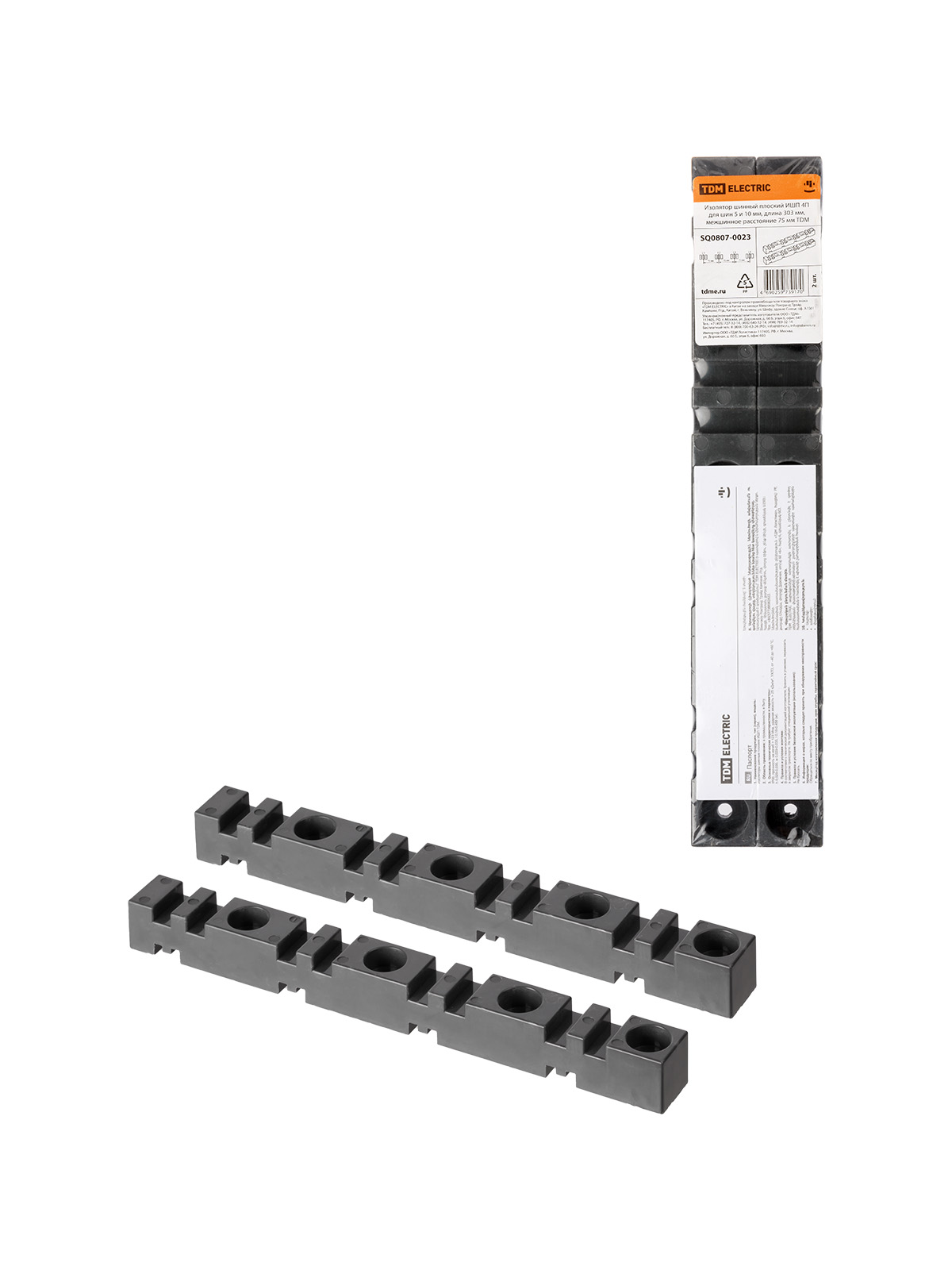 Наименование: Изолятор шинный плоский ИШП 4П для шин 5 и 10 мм, длина 303 мм, межшинное расстояние 75 мм TDM