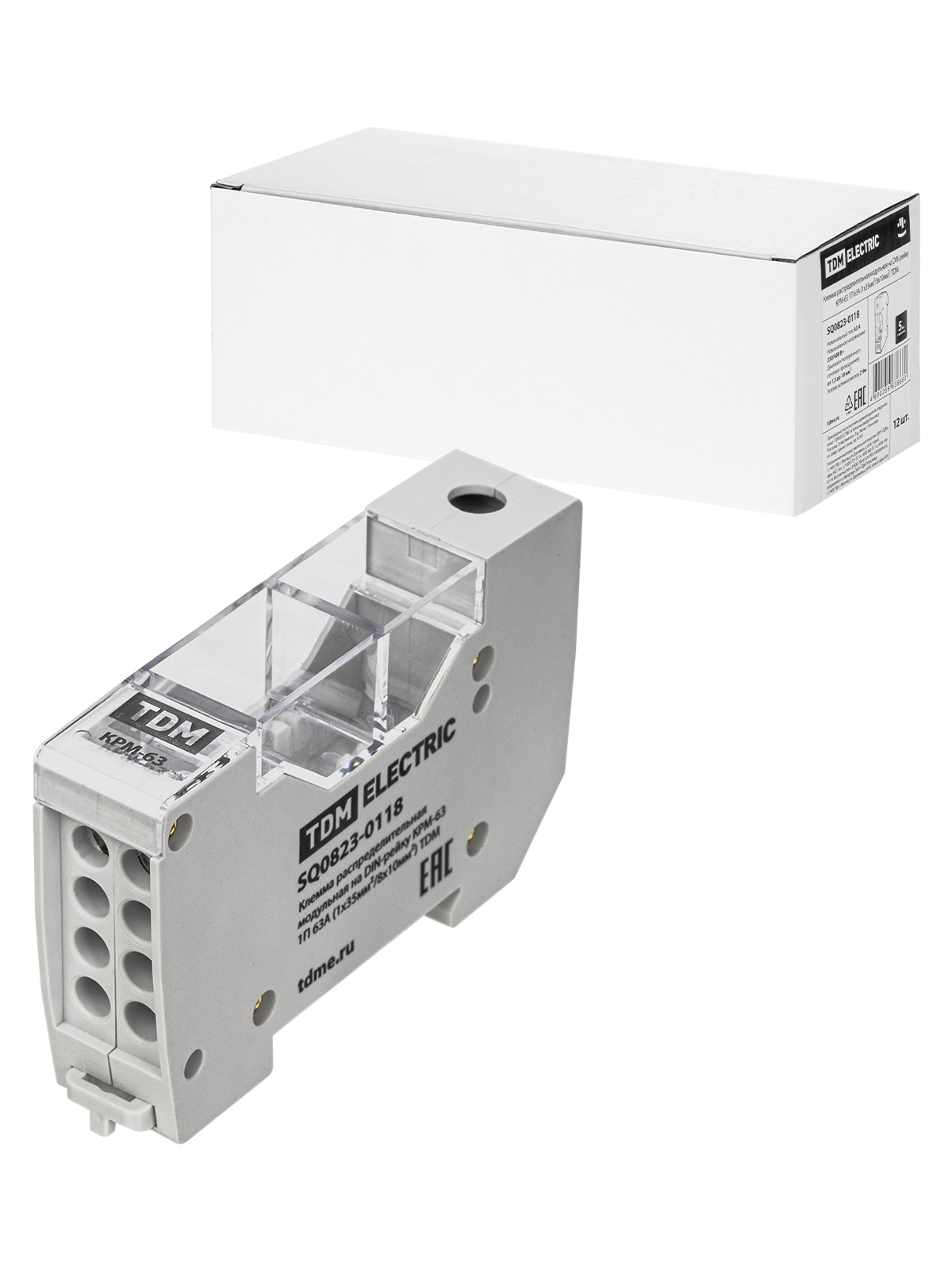Наименование: Клемма распределительная модульная на DIN-рейку КРМ-63 1П 63А (1х35мм?/8х10мм?) TDM