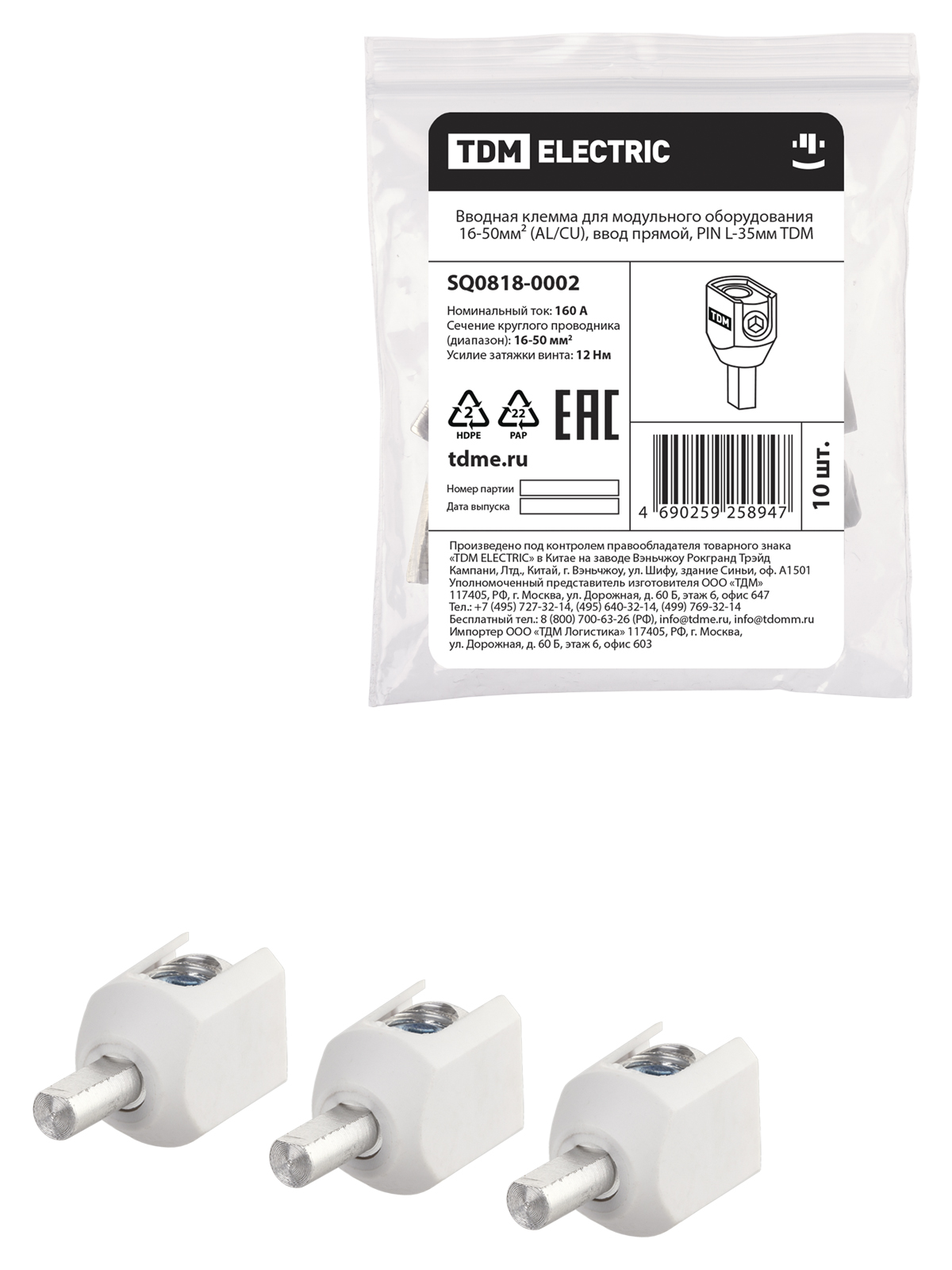 Наименование: Вводная клемма для модульного оборудования 16-50мм? (AL/CU), ввод прямой, PIN L-35мм TDM