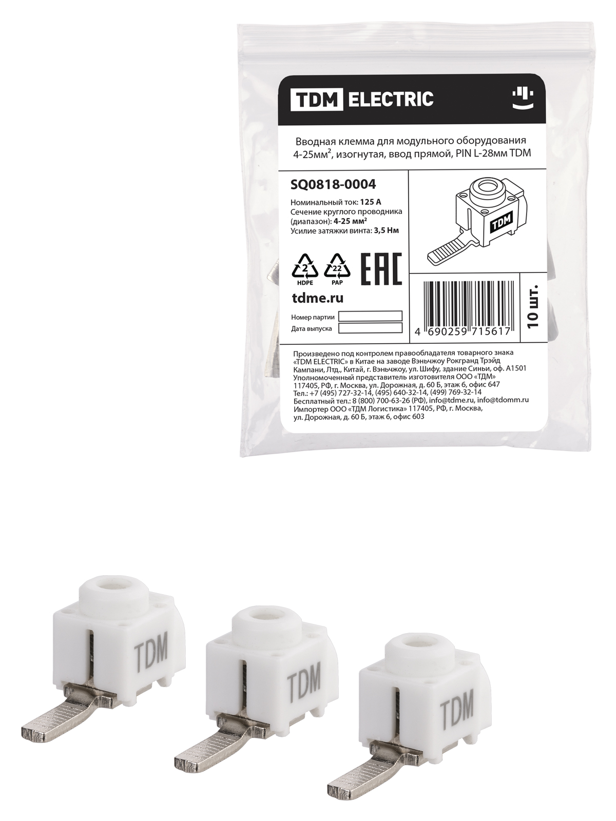 Наименование: Вводная клемма для модульного оборудования 4-25мм?, изогнутая, ввод прямой, PIN L-28мм TDM