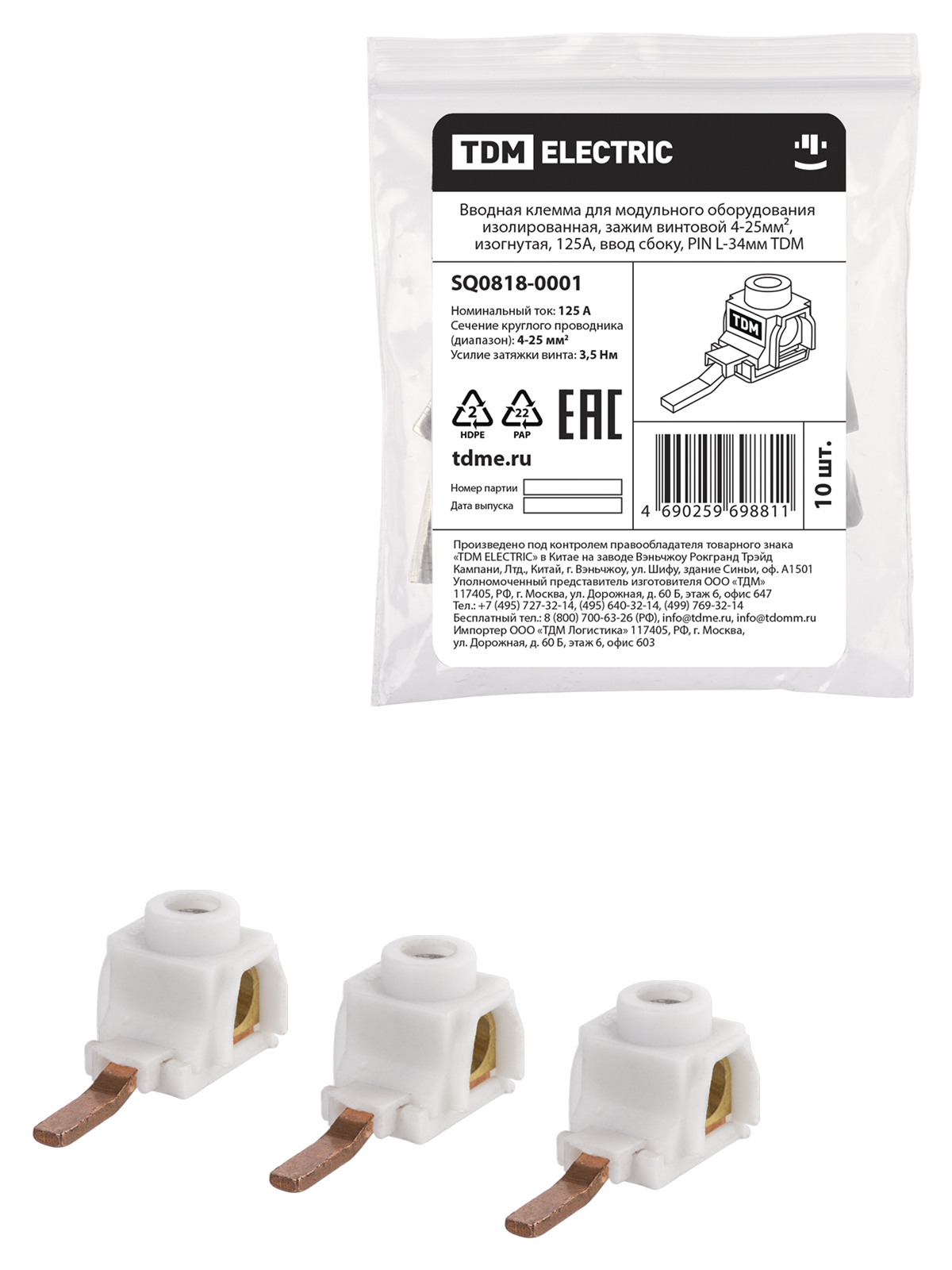 Наименование: Вводная клемма для модульного оборудования 4-25мм?, изогнутая, ввод сбоку, PIN L-34мм TDM