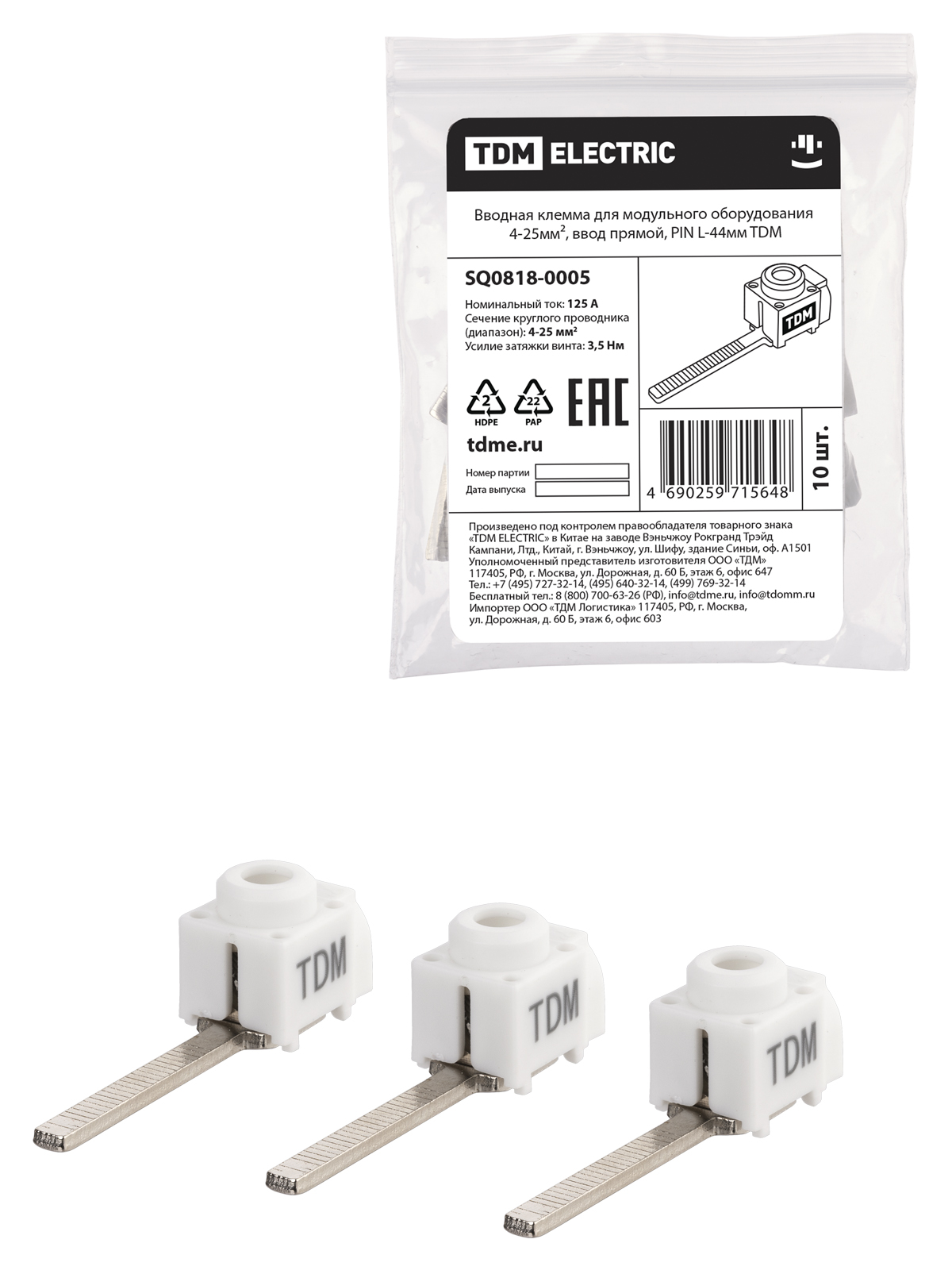 Наименование: Вводная клемма для модульного оборудования 4-25мм?, ввод прямой, PIN L-44мм TDM