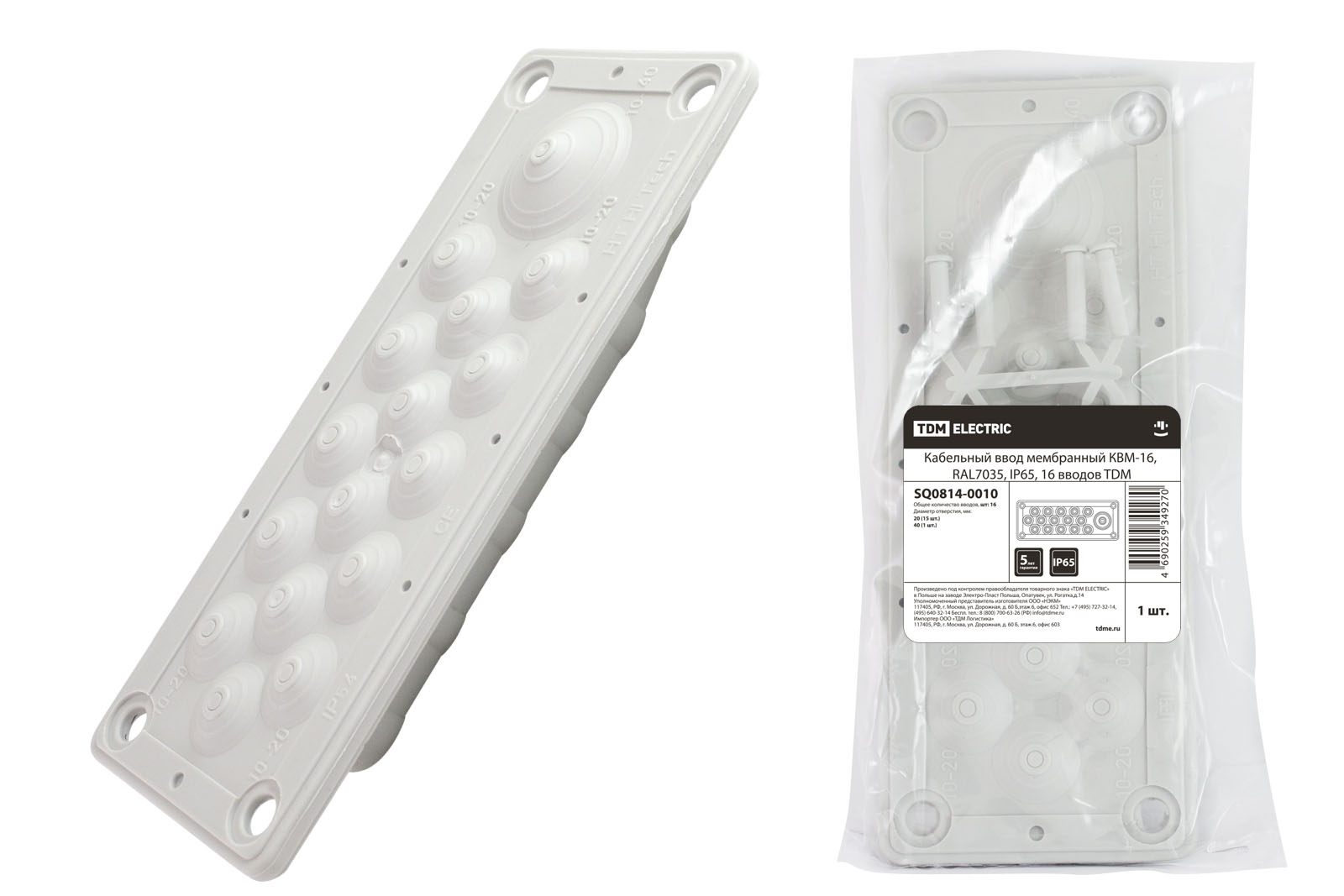 Наименование: Кабельный ввод мембранный КВМ-16, ТЭП, RAL7035, IP54, 16 вводов TDM