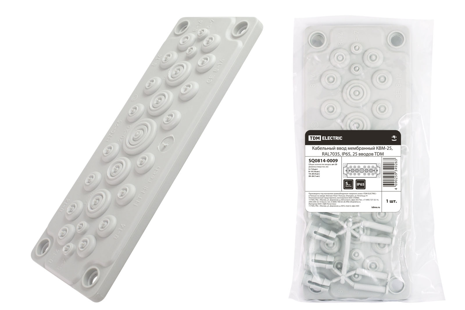 Наименование: Кабельный ввод мембранный КВМ-25, ТЭП, RAL7035, IP66, 25 вводов TDM