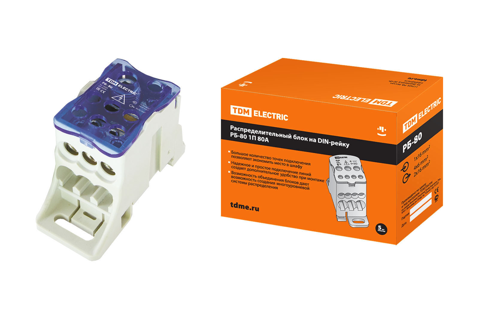 Наименование: Распределительный блок на DIN-рейку РБ-80 1П 80А (1х16/4х6+2x16) TDM