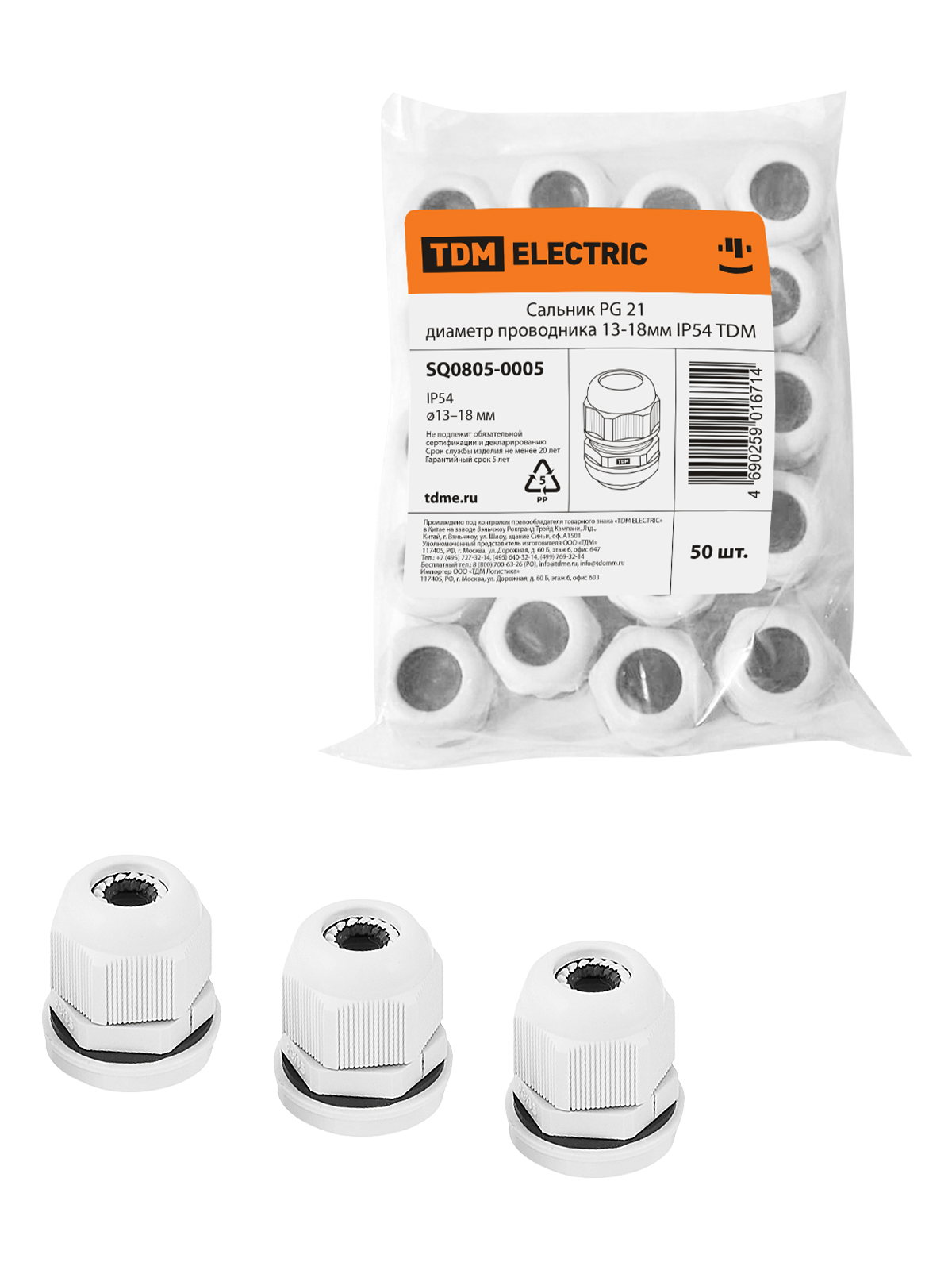 Наименование: Сальник PG 21 диаметр проводника 13-18мм IP54 TDM