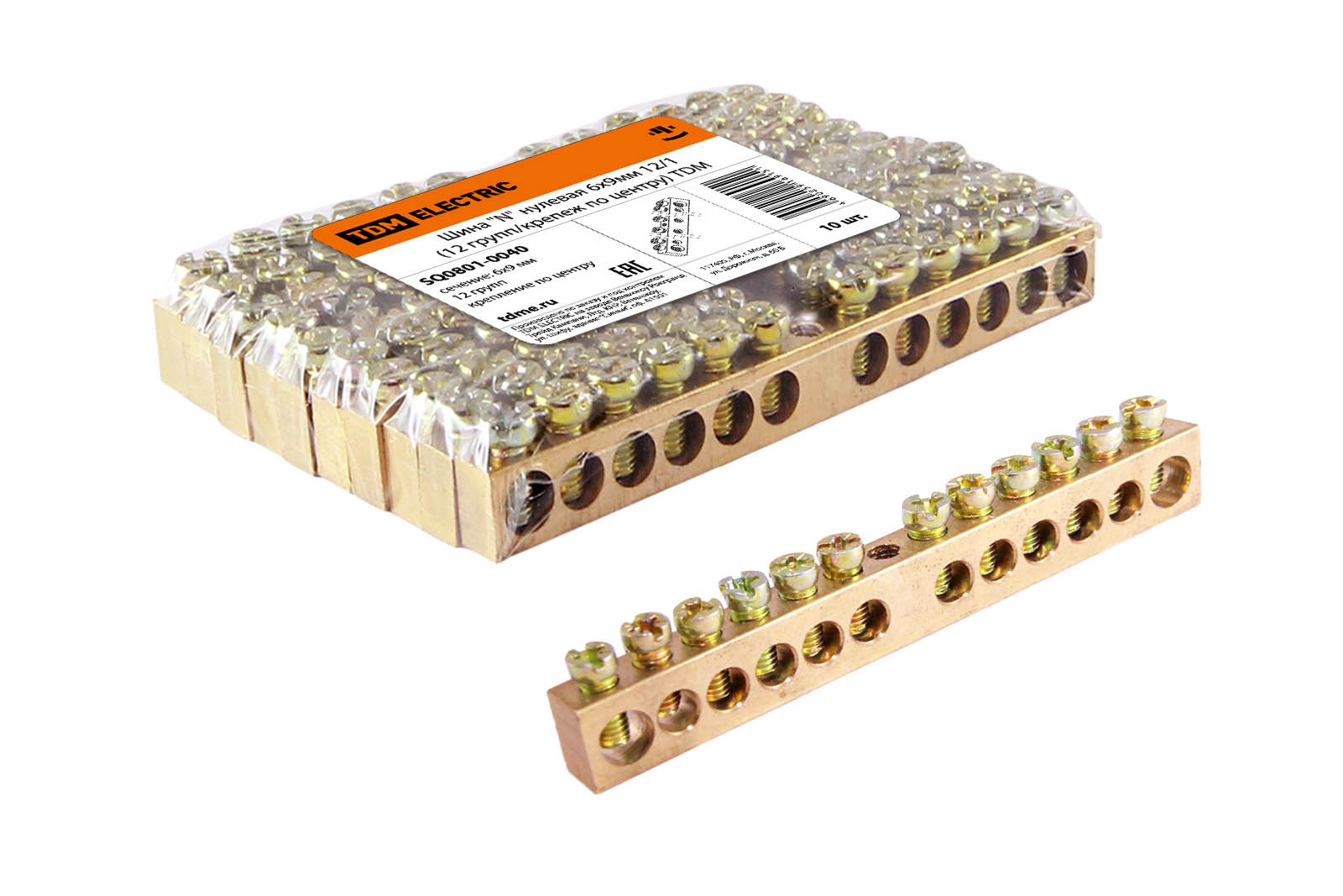 Шина "N" нулевая 6х9мм 12/1 (12 групп/крепеж по центру) TDM