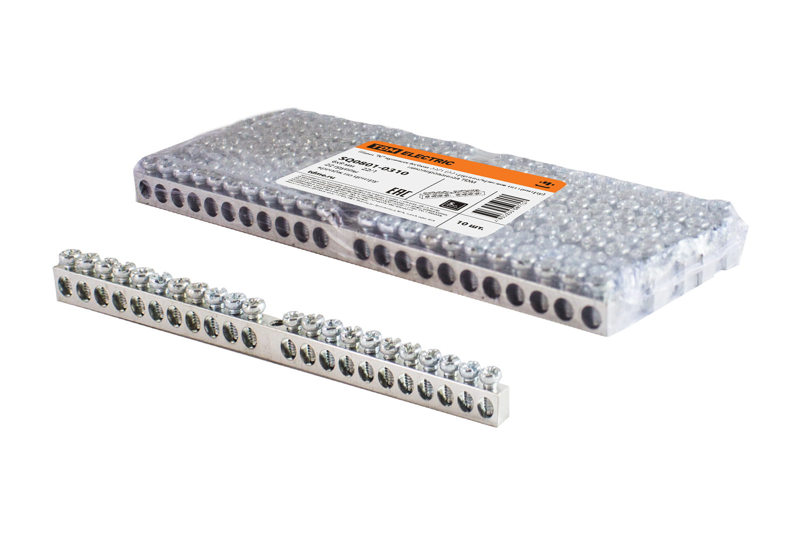 Наименование: Шина "N" нулевая 6х9мм 22/1 (22 группы/крепеж по центру) никелированная TDM