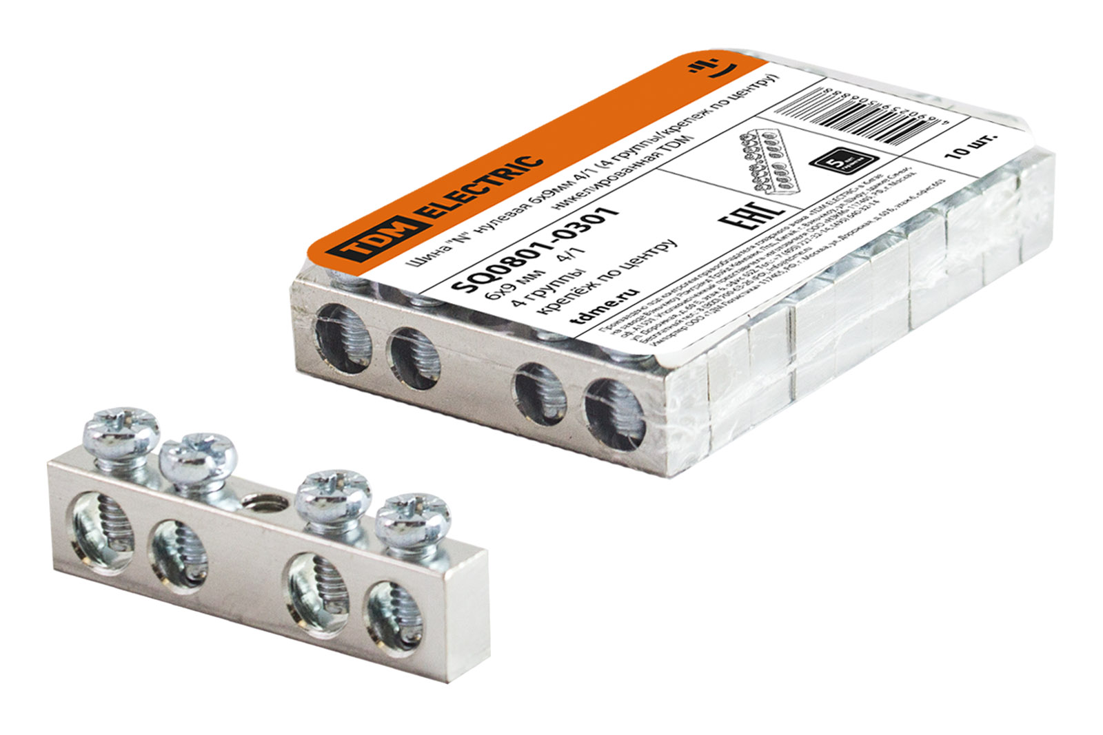 Наименование: Шина "N" нулевая 6х9мм 4/1 (4 группы/крепеж по центру) никелированная TDM