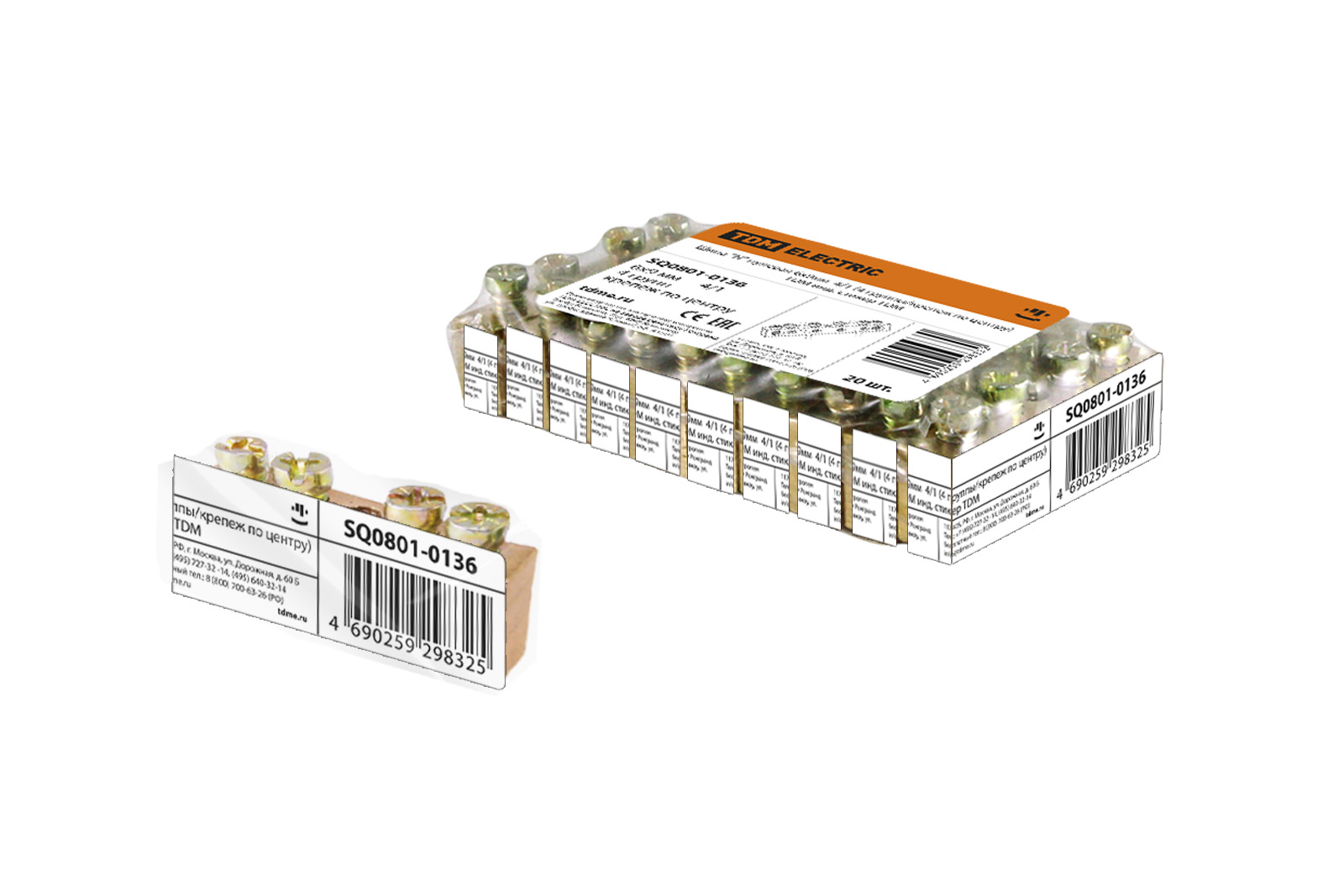 Наименование: Шина "N" нулевая 6х9мм 4/1 (4 группы/крепеж по центру) TDM инд. стикер TDM