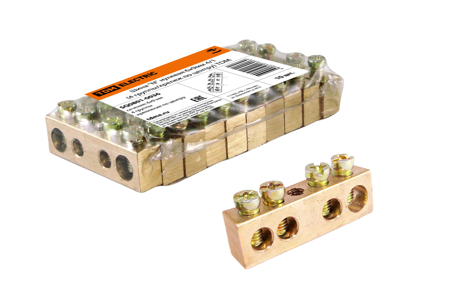 Наименование: Шина "N" нулевая 6х9мм 4/1 (4 группы/крепеж по центру) TDM