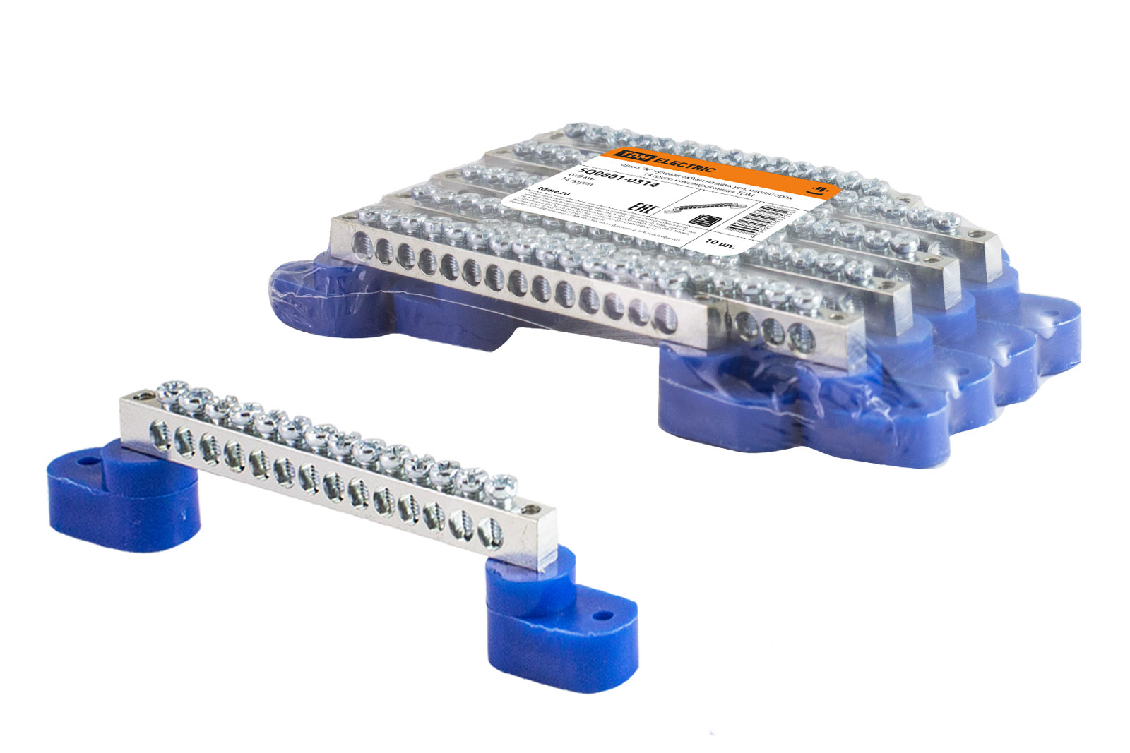 Наименование: Шина "N" нулевая 6х9мм на двух угл. изоляторах 14 групп никелированная TDM