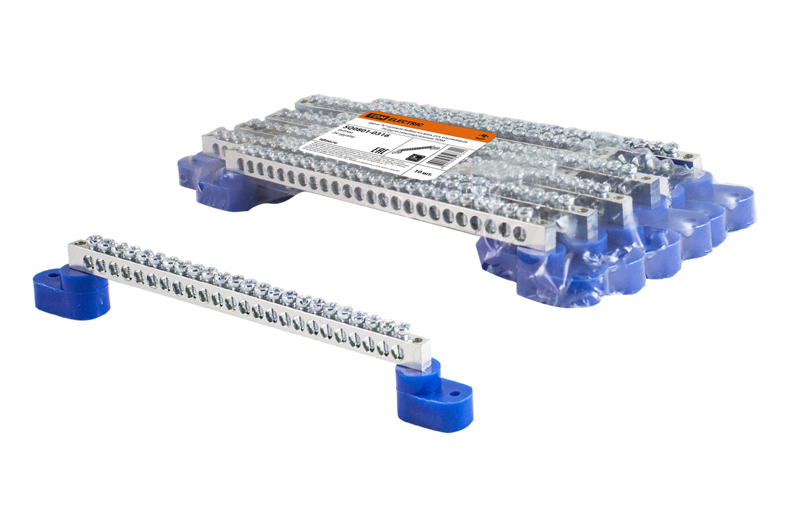 Наименование: Шина "N" нулевая 6х9мм на двух угл. изоляторах 24 групп никелированная TDM