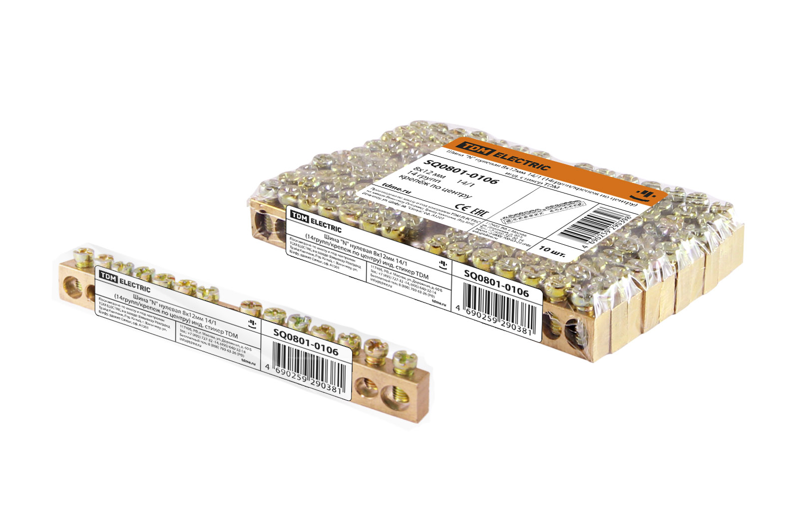 Наименование: Шина "N" нулевая 8х12мм 14/1 (14групп/крепеж по центру) инд. стикер TDM