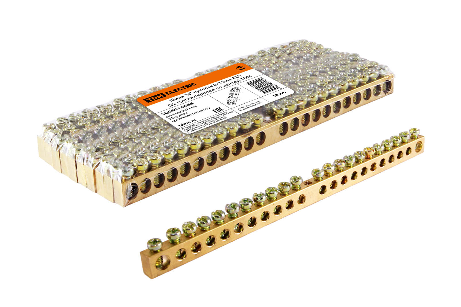 Шина "N" нулевая 8х12мм 22/1 (22 группы/крепеж по центру) TDM