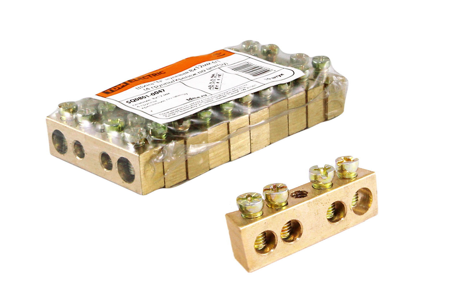 Шина "N" нулевая 8х12мм 4/1 (4 группы/крепеж по центру) TDM