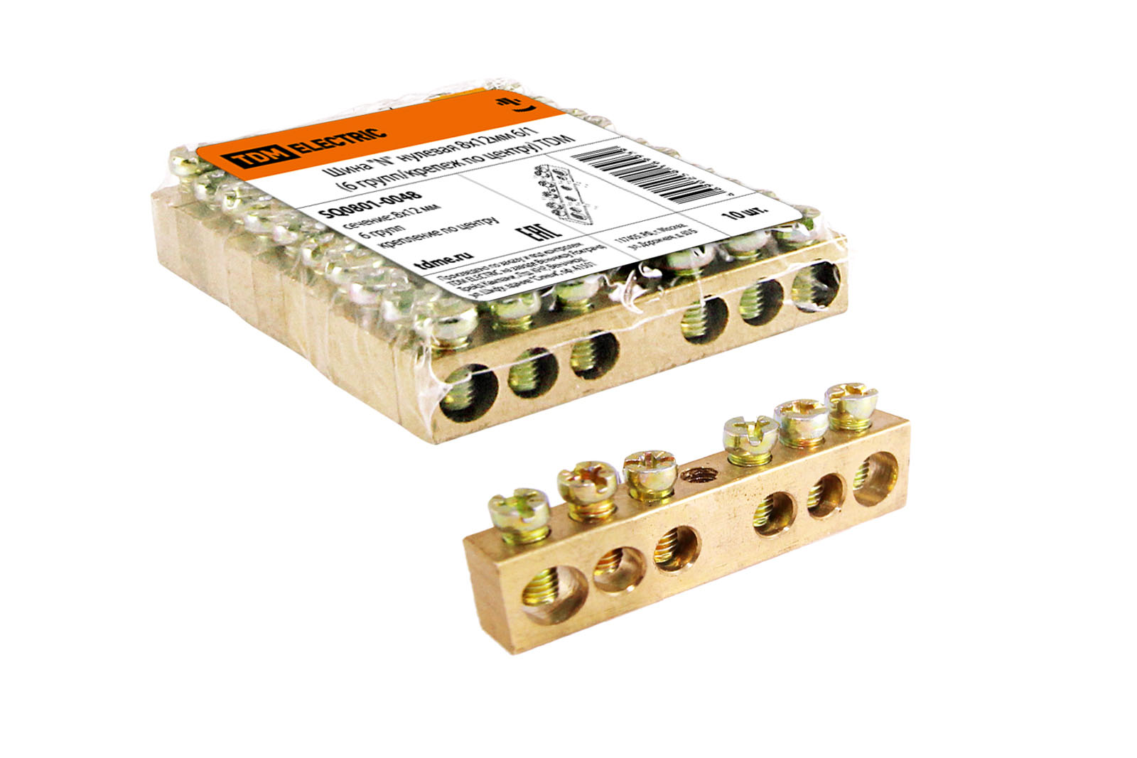 Наименование: Шина "N" нулевая 8х12мм 6/1 (6 групп/крепеж по центру) TDM