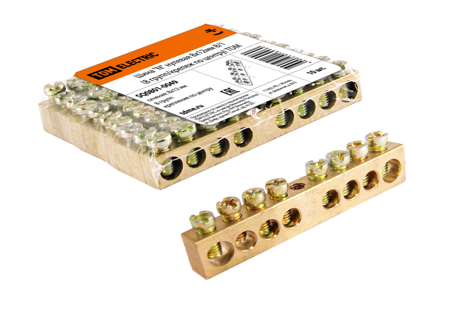 Наименование: Шина "N" нулевая 8х12мм 8/1 (8 групп/крепеж по центру) TDM