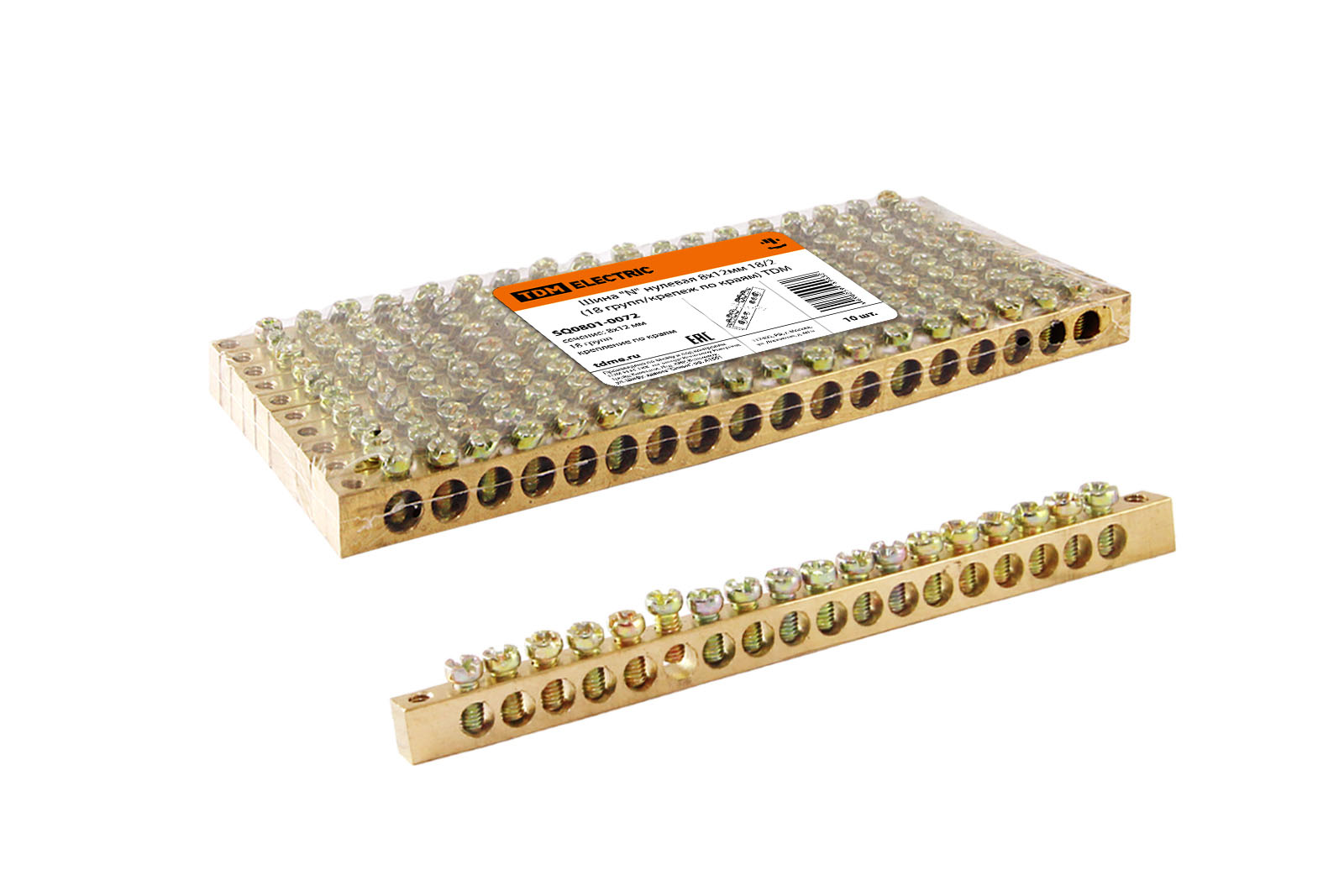 Шина "N" нулевая 8x12мм 18/2 (18 групп/крепеж по краям) TDM