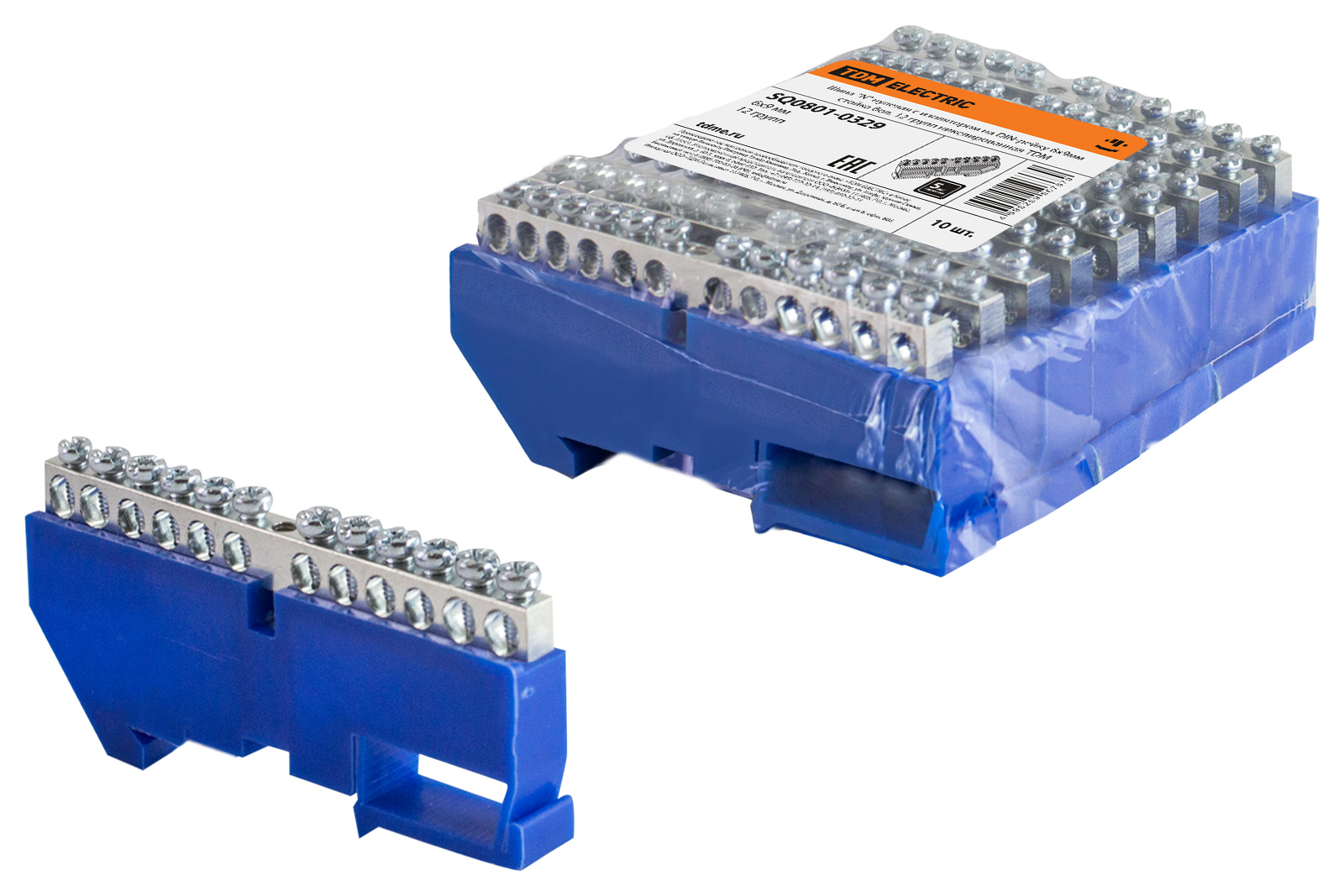 Наименование: Шина "N" нулевая с изолятором на DIN-рейку 6x9мм стойка бол. 12 групп никелированная TDM