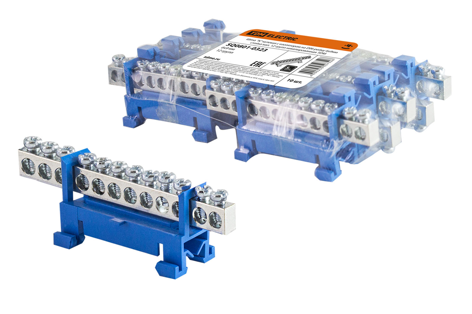 Наименование: Шина "N" нулевая с изолятором на DIN-рейку 6x9мм стойка мал. 12 групп никелированная TDM