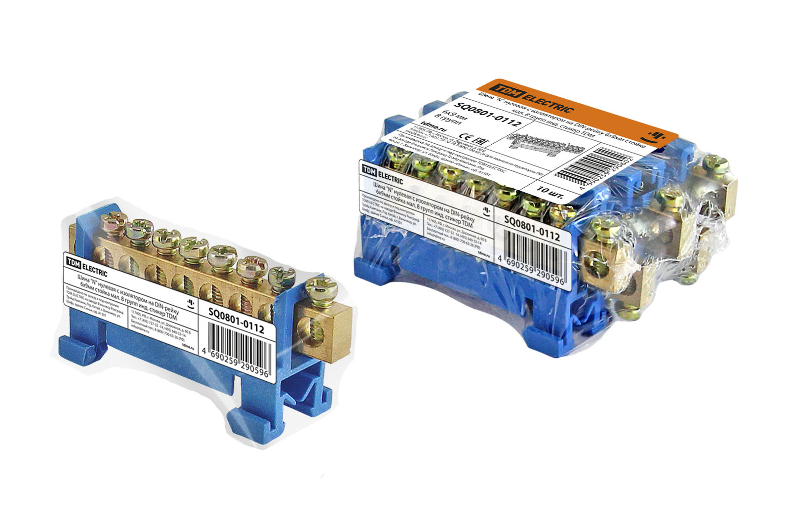 Наименование: Шина "N" нулевая с изолятором на DIN-рейку 6x9мм стойка мал. 8 групп инд. стикер TDM