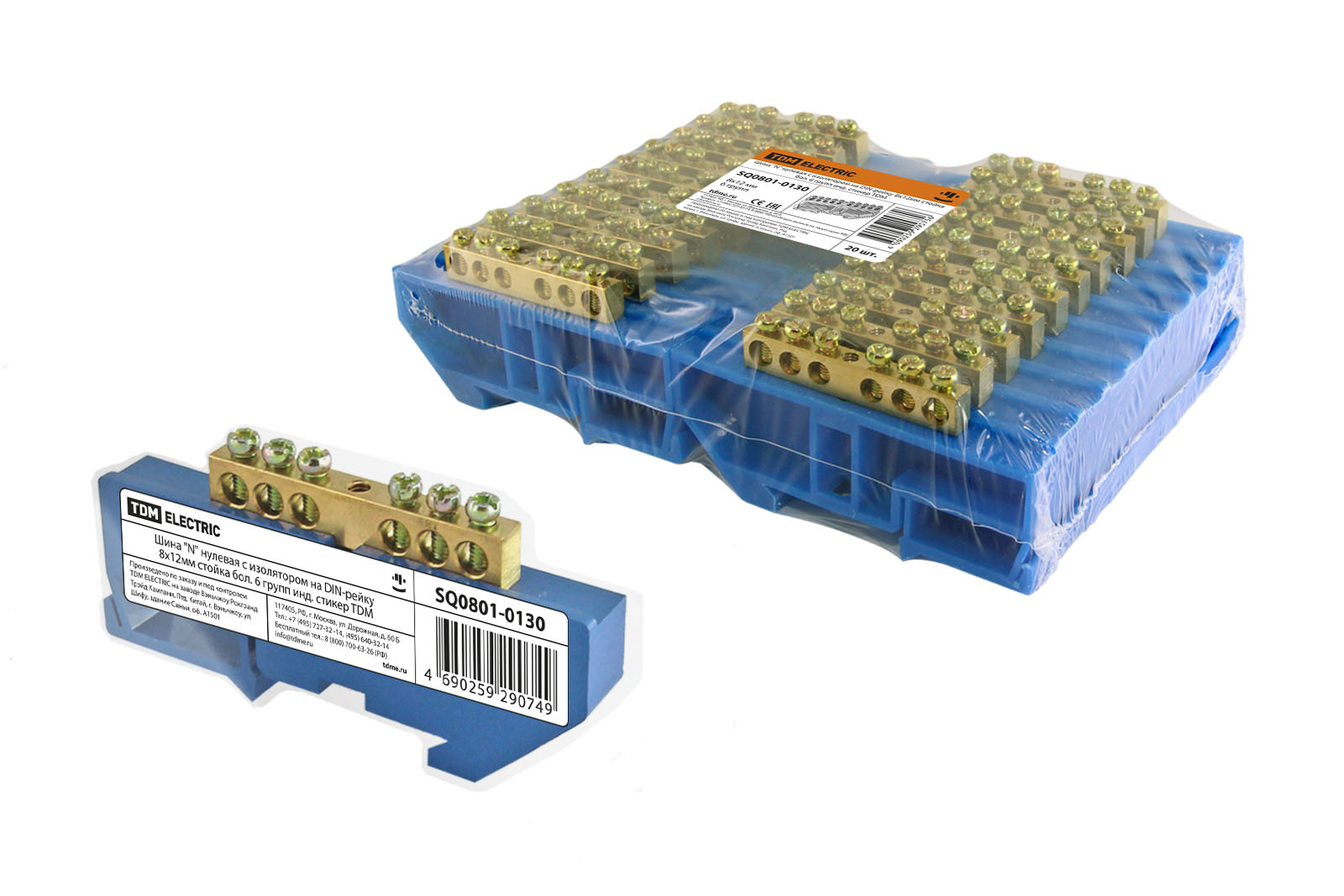 Наименование: Шина "N" нулевая с изолятором на DIN-рейку 8x12мм стойка бол. 6 групп инд. стикер TDM
