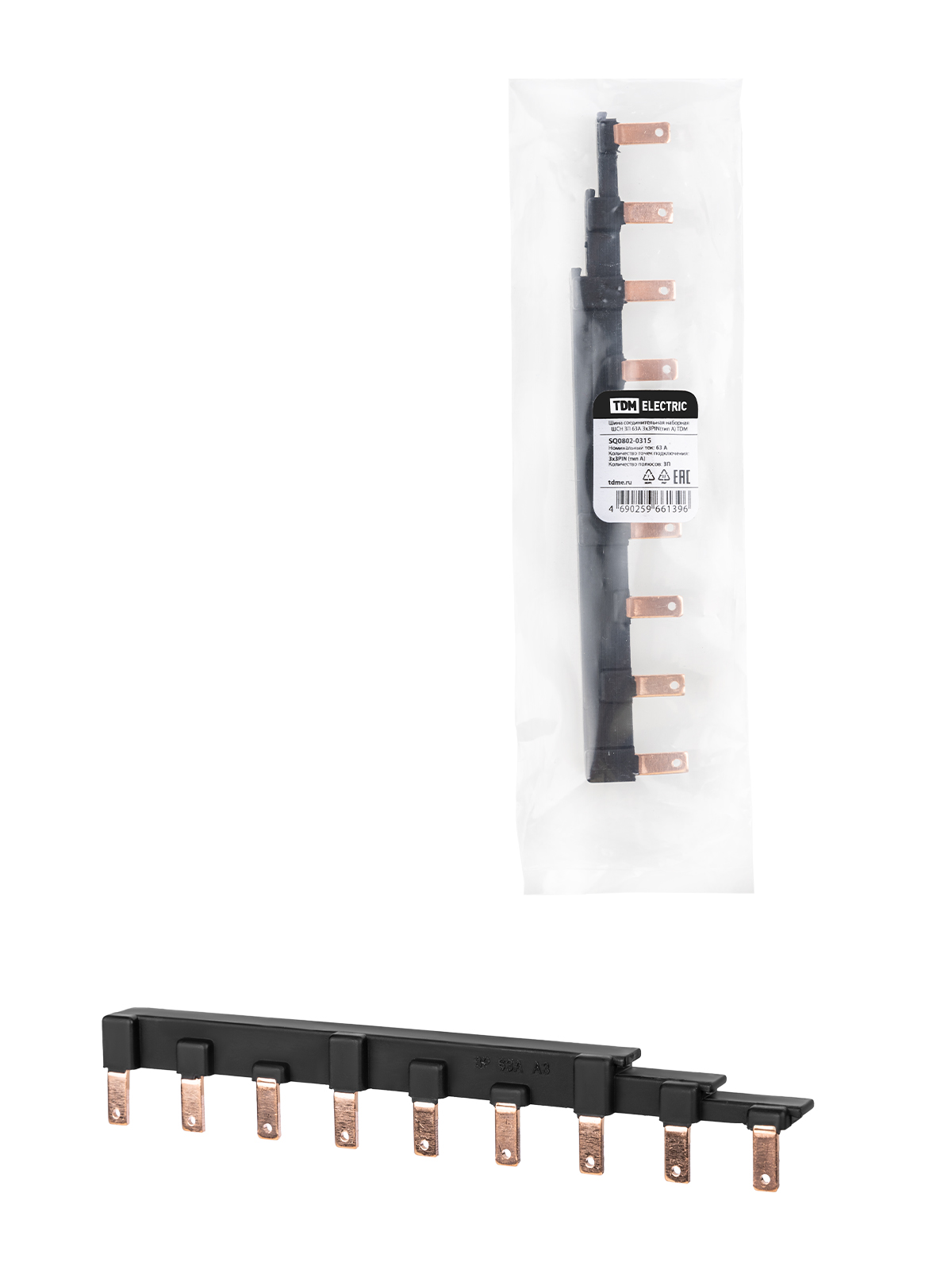 Наименование: Шина соединительная наборная ШСН 3П 63А 3x3PIN(тип A) TDM