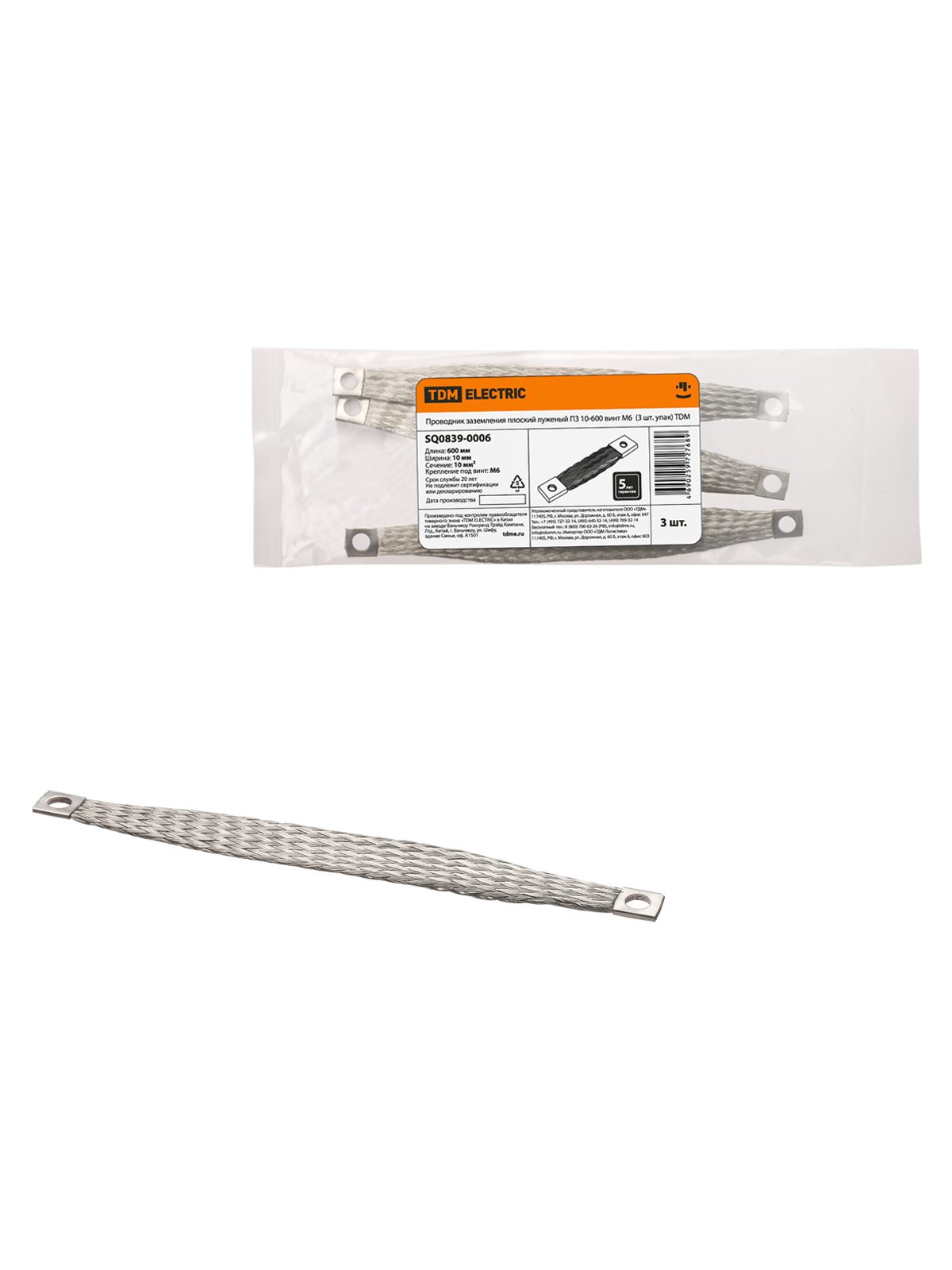 Наименование: Проводник заземления плоский луженый ПЗ 10-600 (3 шт. упак) ТDM
