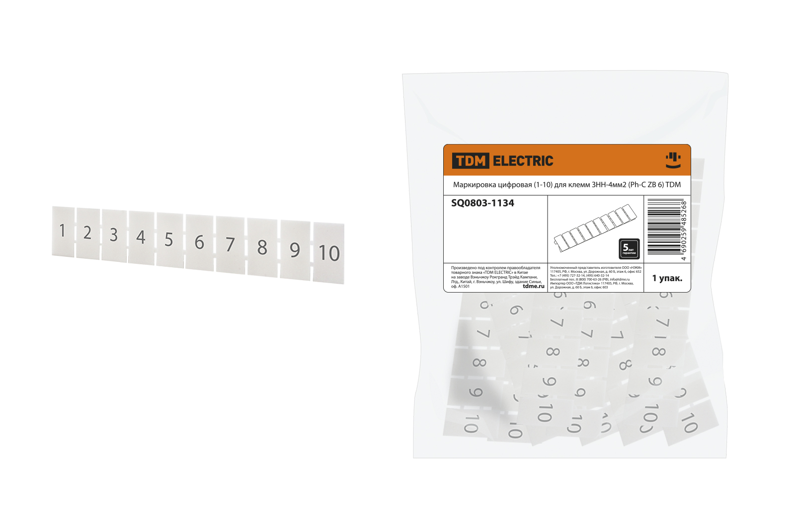 Наименование: Маркировка цифровая (1-10) для клемм ЗНН-4мм2 (Ph-C ZB 6) TDM