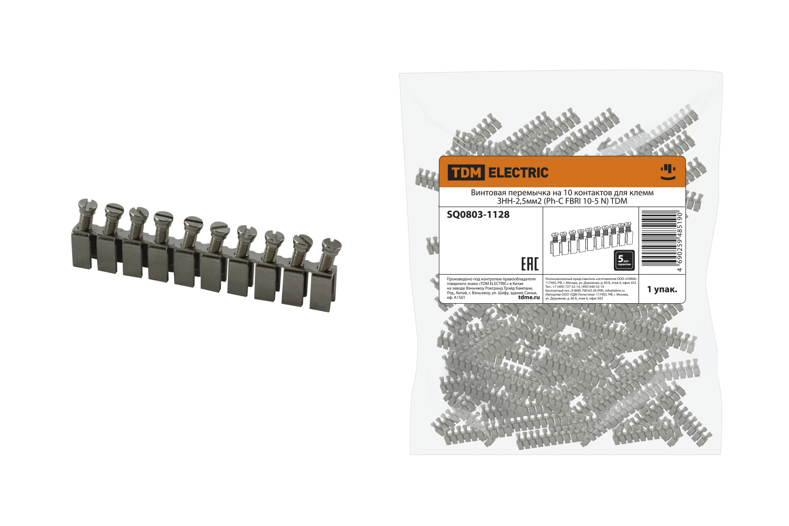 Наименование: Винтовая перемычка на 10 контактов для клемм ЗНН-2,5мм2 (Ph-C FBRI 10-5 N) TDM