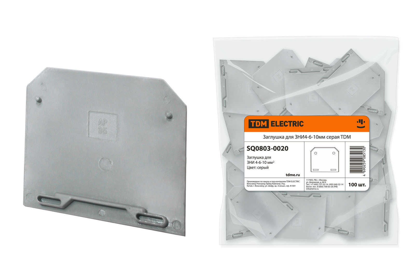 Наименование: Заглушка для ЗНИ4-6-10мм2 серая TDM