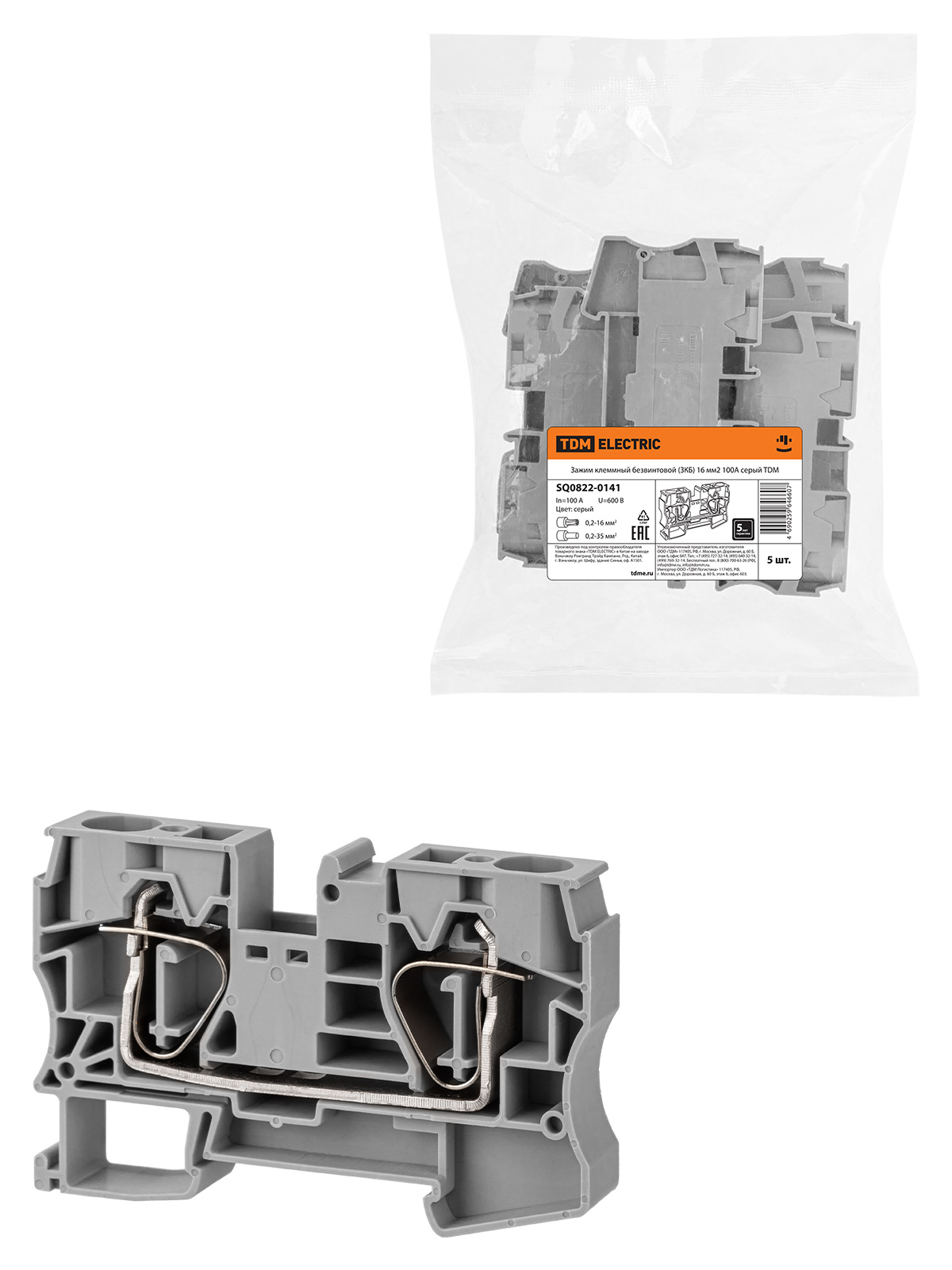 Наименование: Зажим клеммный безвинтовой (ЗКБ) 16мм2 100А серый TDM