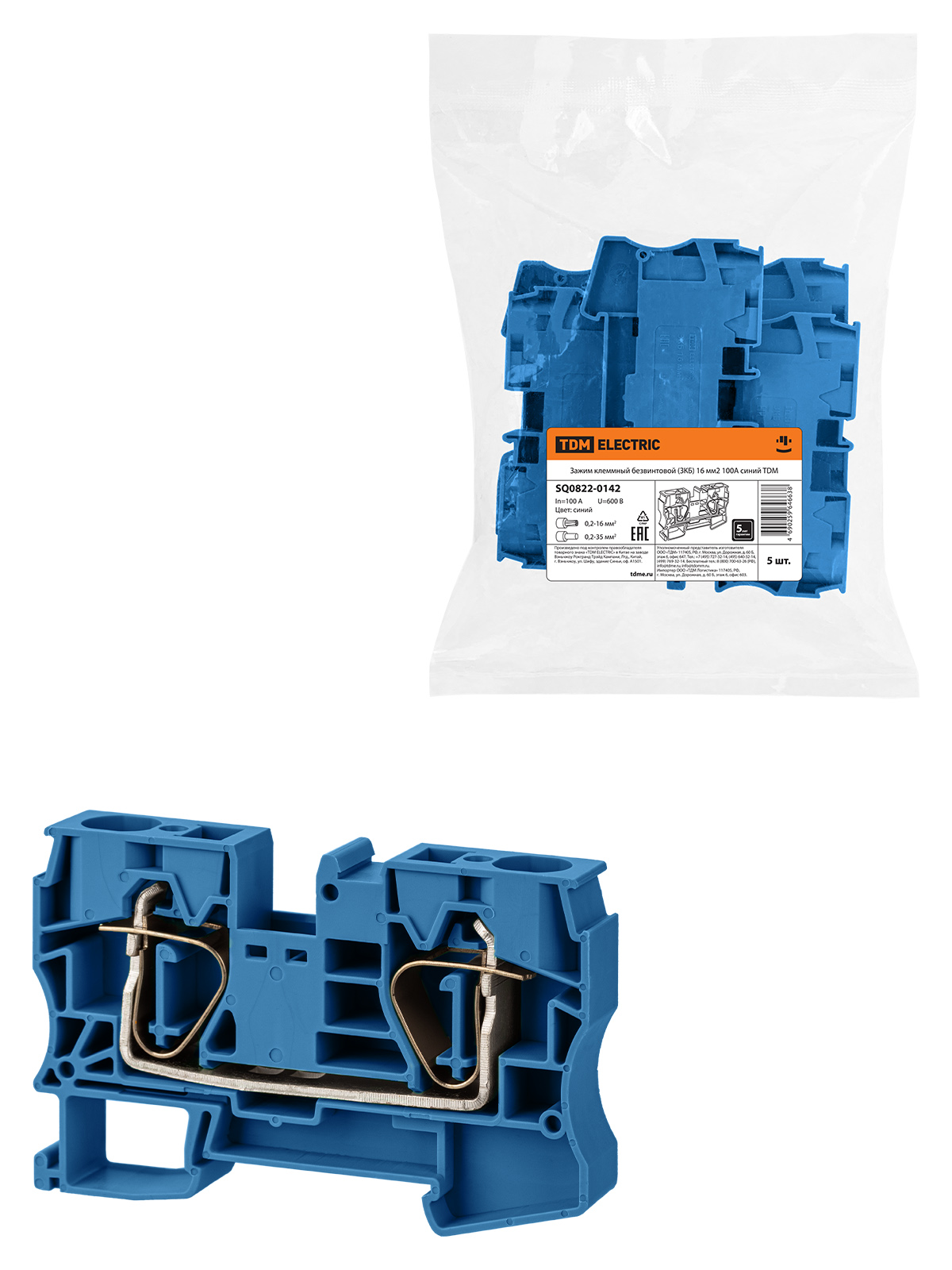 Наименование: Зажим клеммный безвинтовой (ЗКБ) 16мм2 100А синий TDM