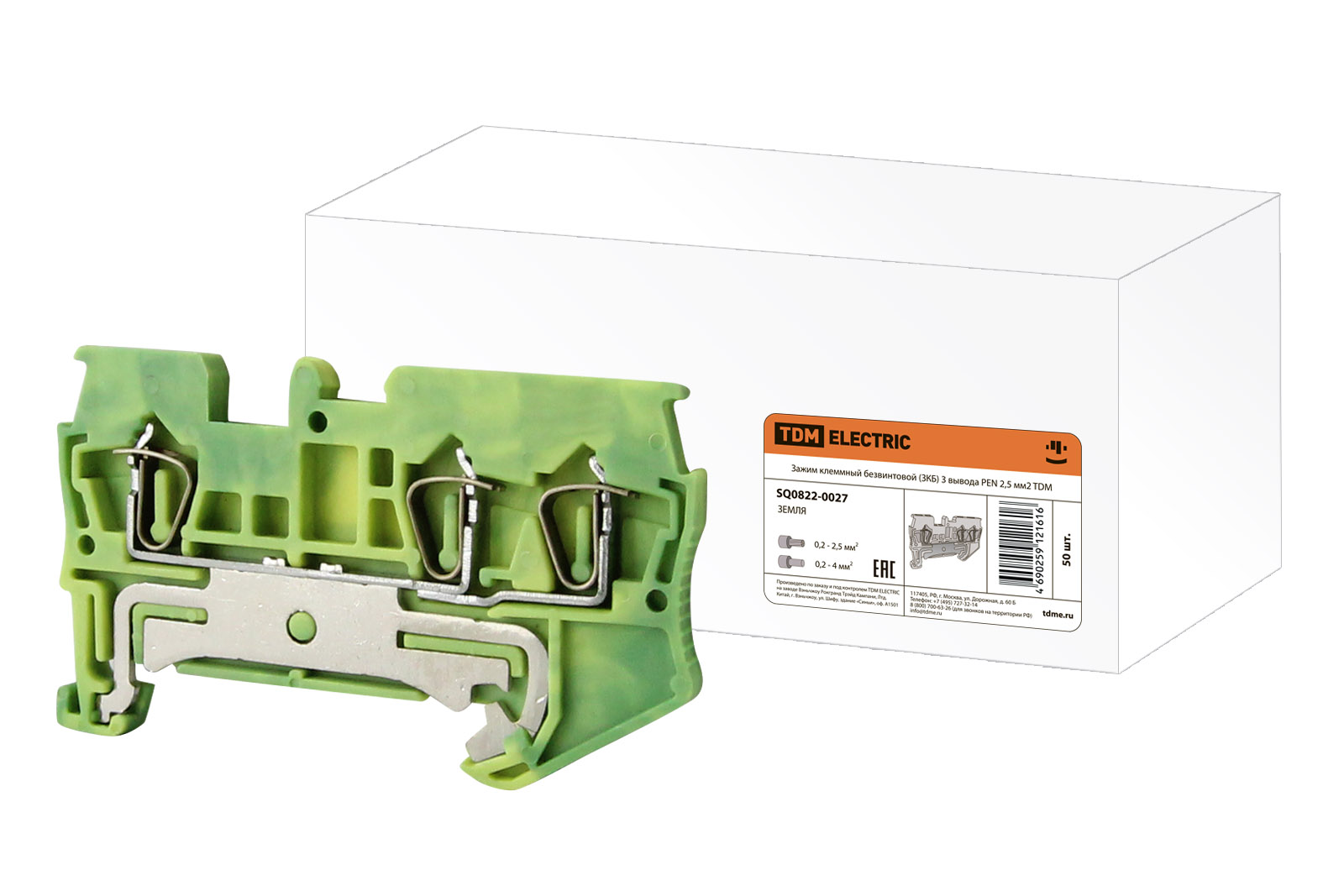 Наименование: Зажим клеммный безвинтовой (ЗКБ) 3 вывода PEN 2,5 мм2 TDM