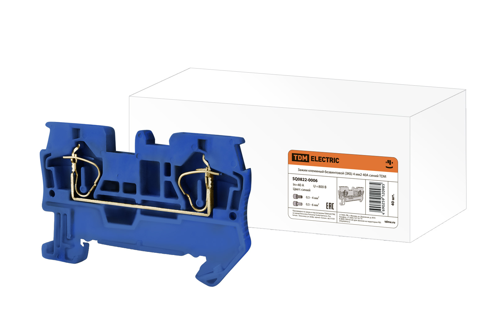 Наименование: Зажим клеммный безвинтовой (ЗКБ) 4 мм2 40А синий TDM